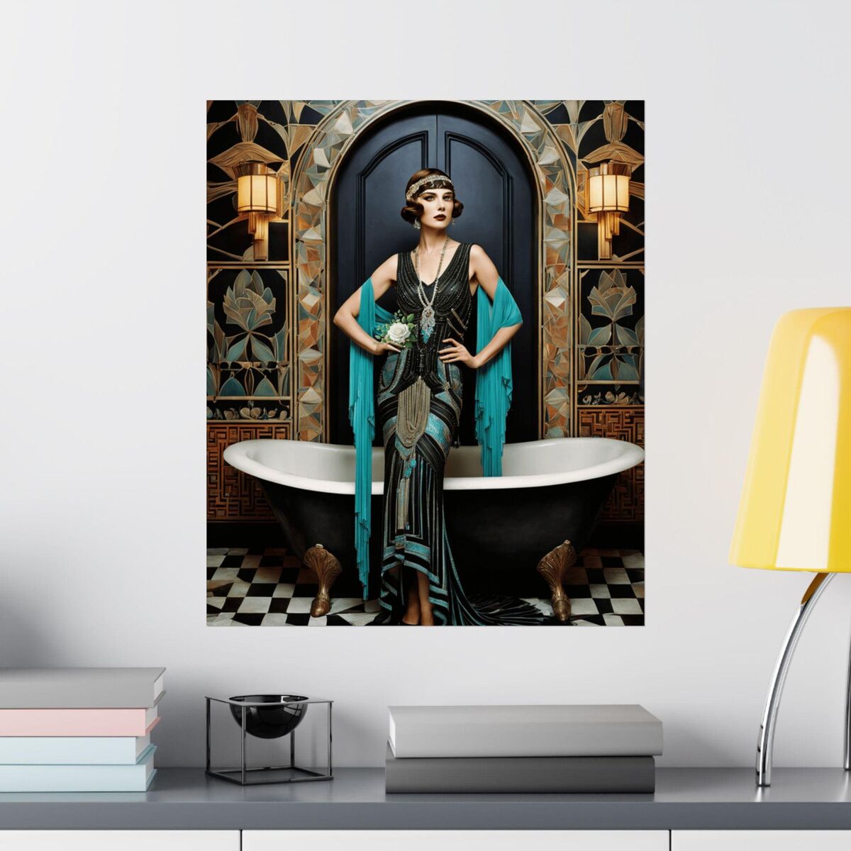 Mosaic Print Flapper Art Deco Wall Art Painting Print Gatsby Old Hollywood Girl Glamour Gatsby Retro Poster 1920s Wall Art