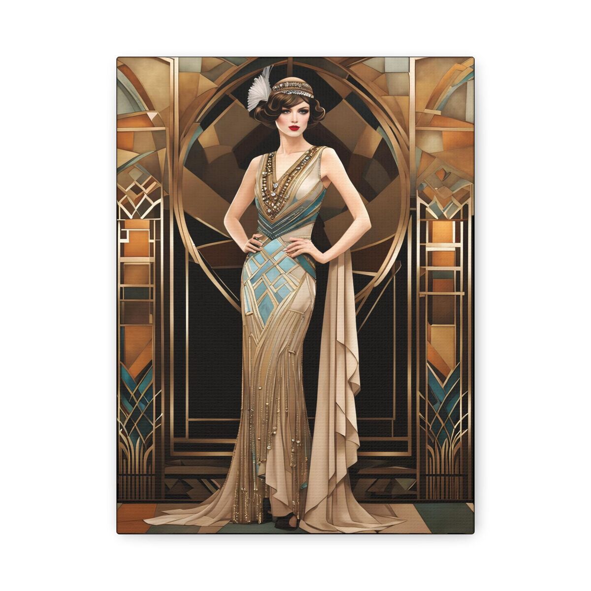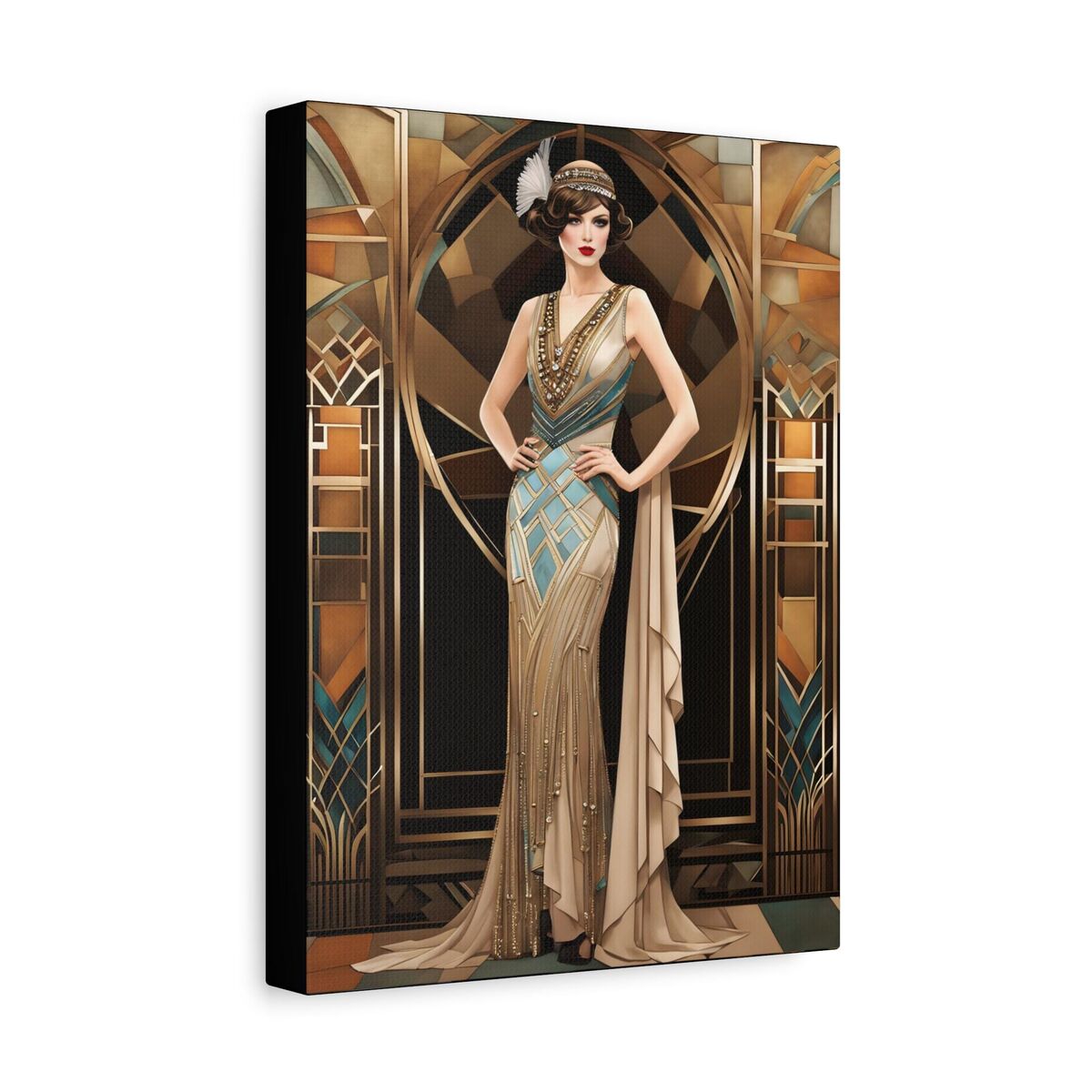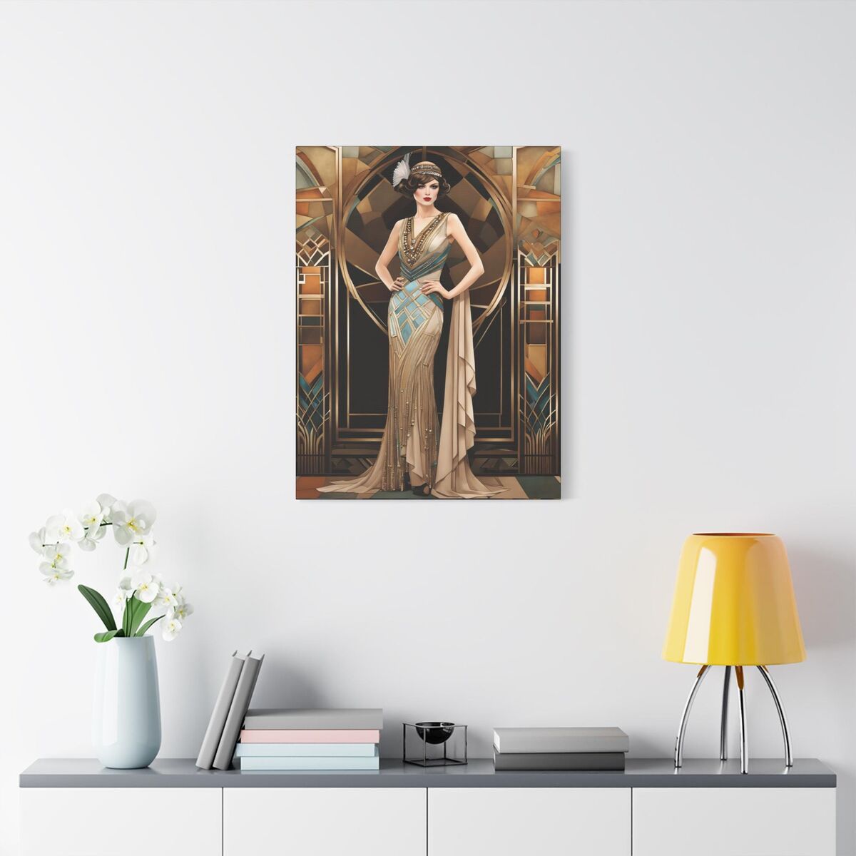 Introducing our Art Deco Canvas Wall Art Print, a stunning piece that captures the essence of the 1920s Gatsby style with a modern twist. This unique artwork features a captivating portrait. The intricate design add a touch of sophistication and elegance to any space, making it the perfect addition to your home decor.