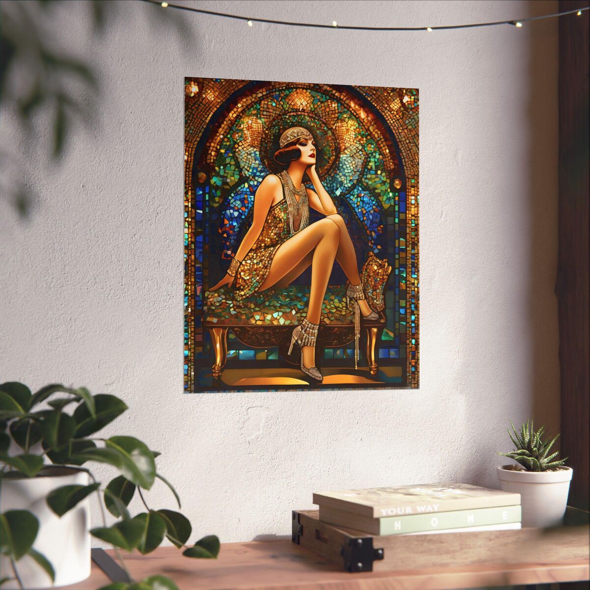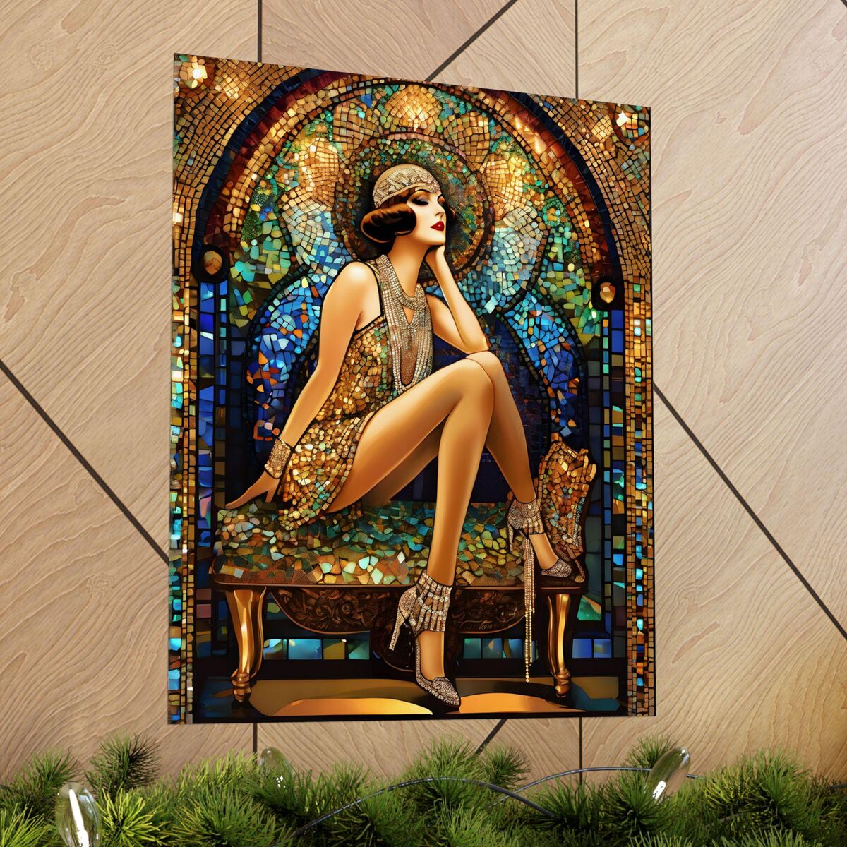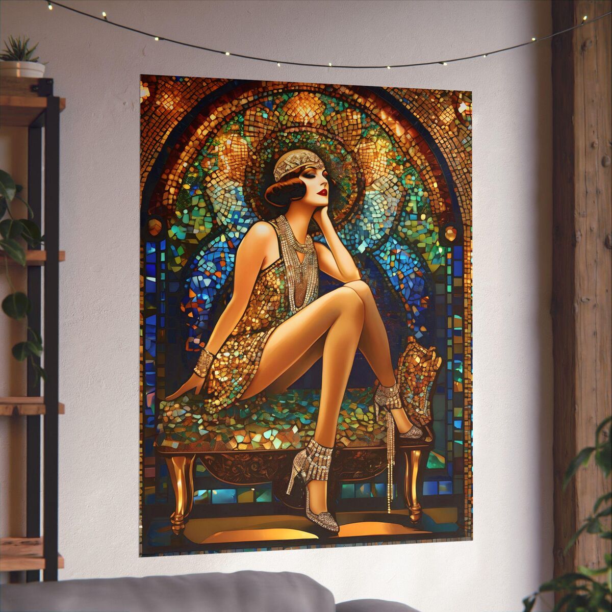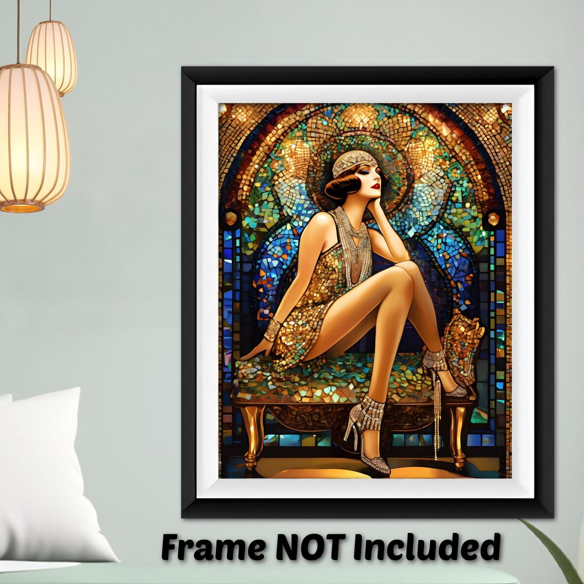 Art Deco Gatsby Girl Mosiac Print Wall Art Painting Print Poster Retro 1920s Style Home Decor
