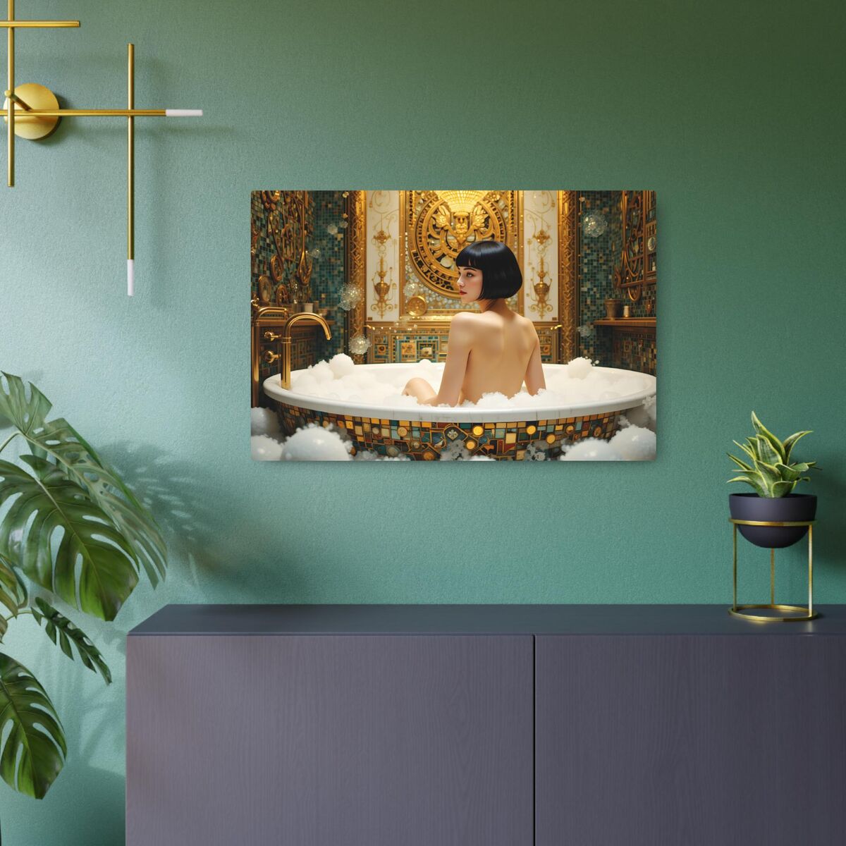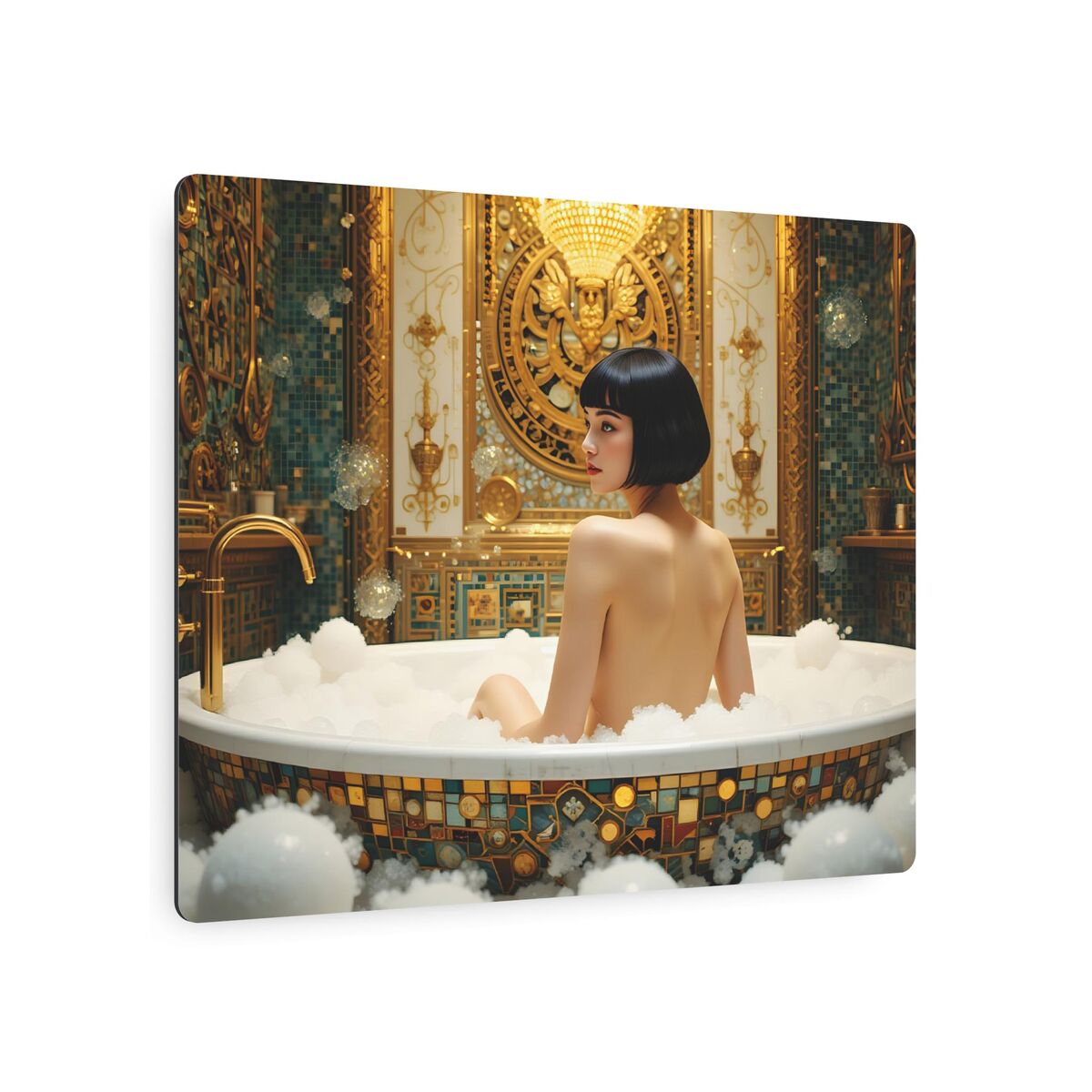 Art Deco Metal Art Poster Bathroom Speakeasy Gatsby Decor Faux Mosaic Mucha Klimt Inspired Woman Portrait Meatal Wall Art Painting Print