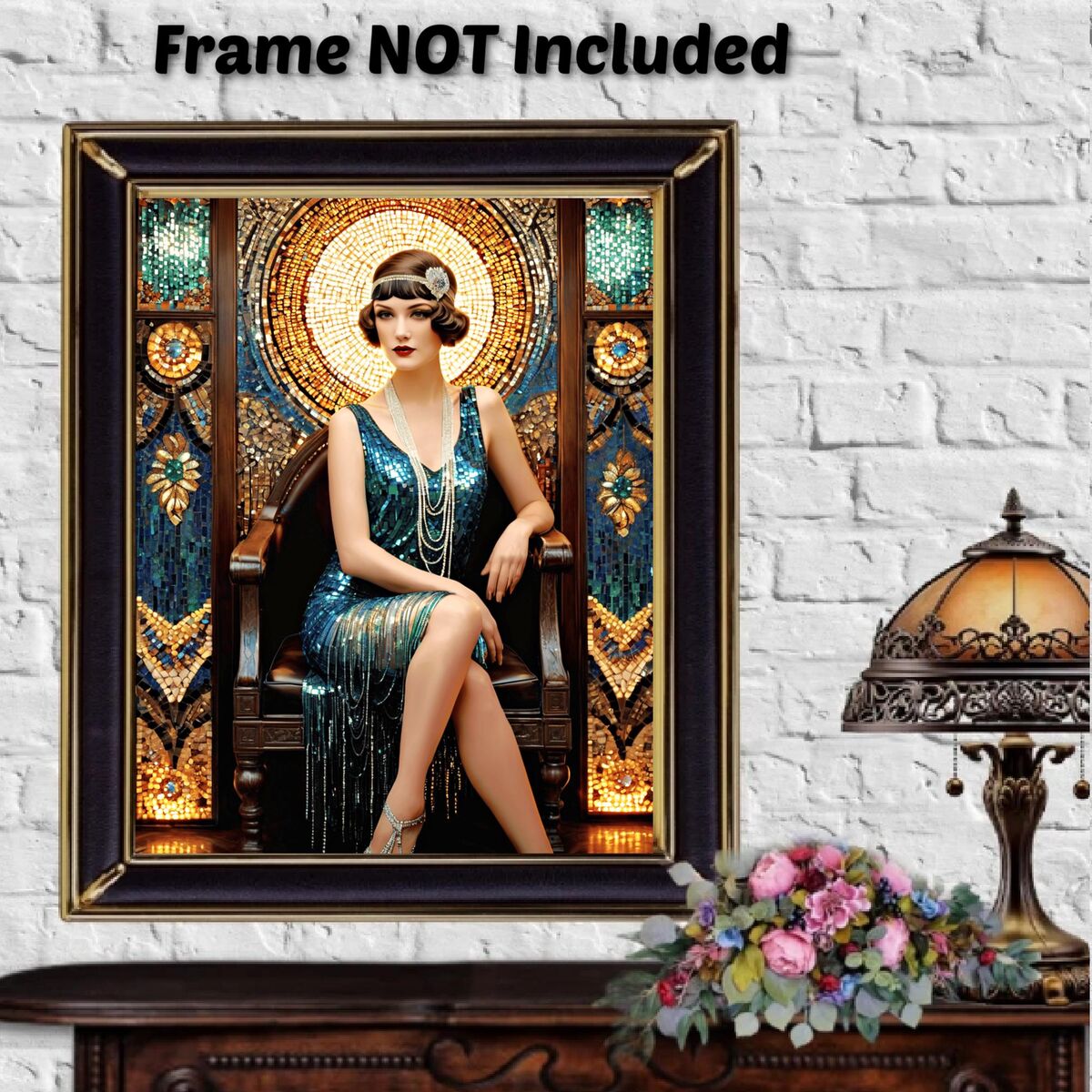 Art Deco Mosaic Print Flapper Wall Art Painting Print Gatsby Old Hollywood Girl Glamour Gatsby Retro Poster 1920s Wall Art