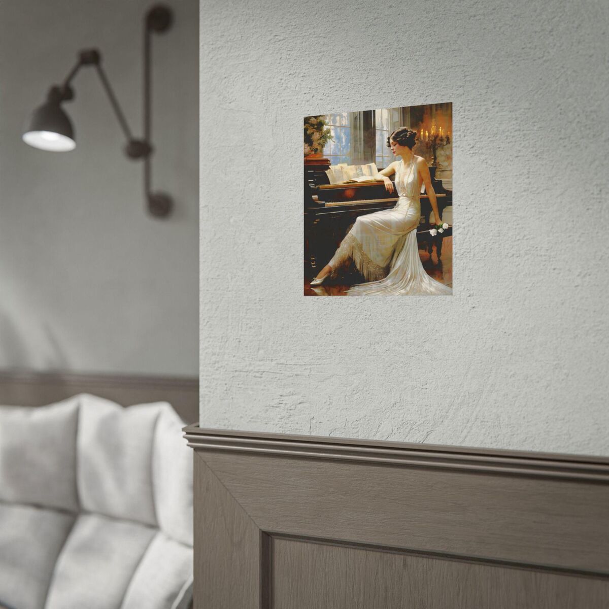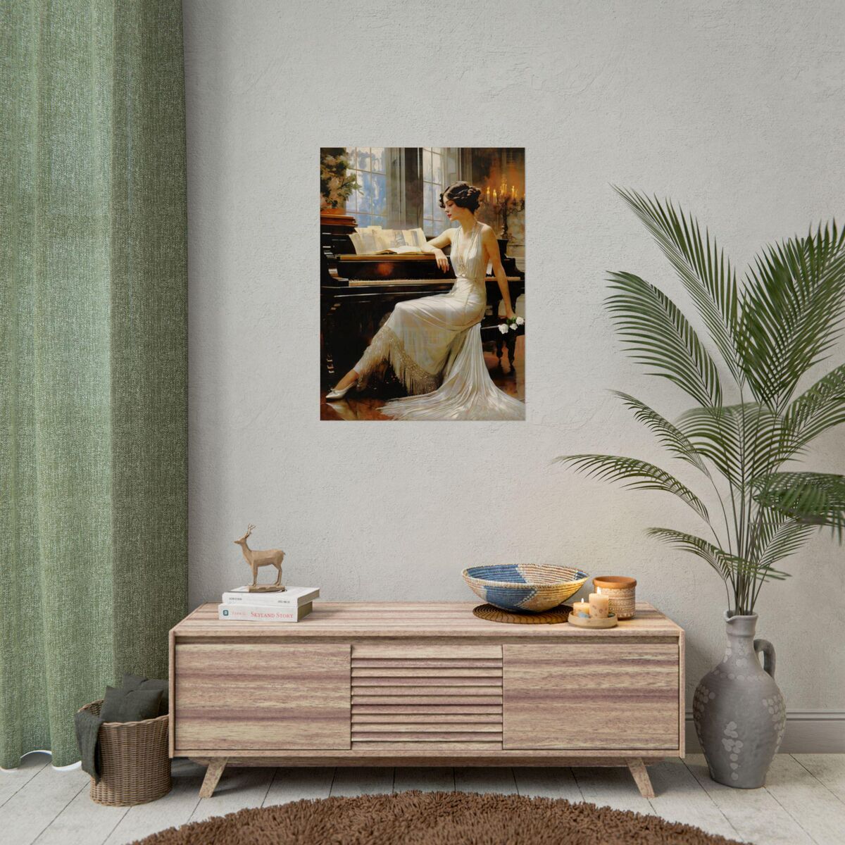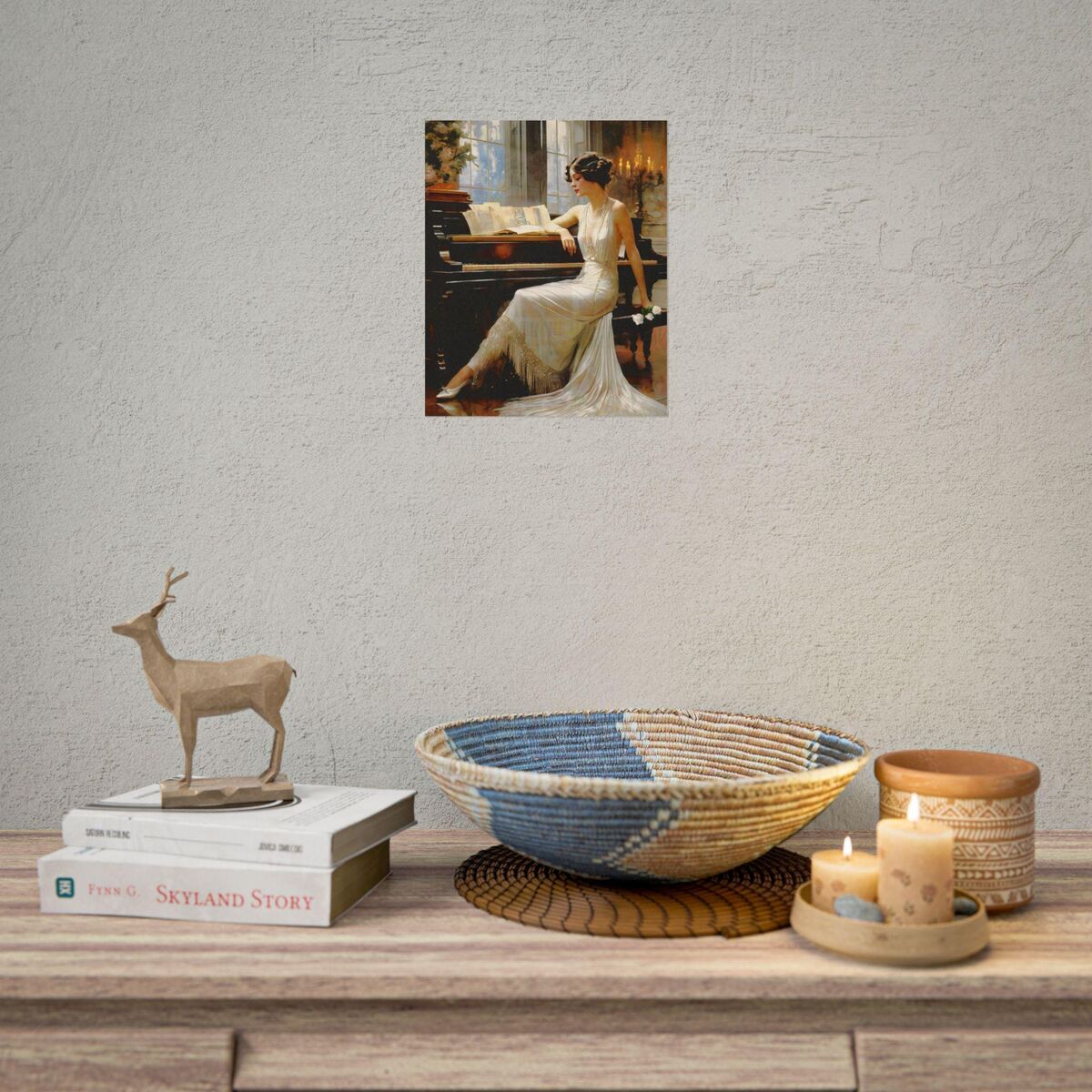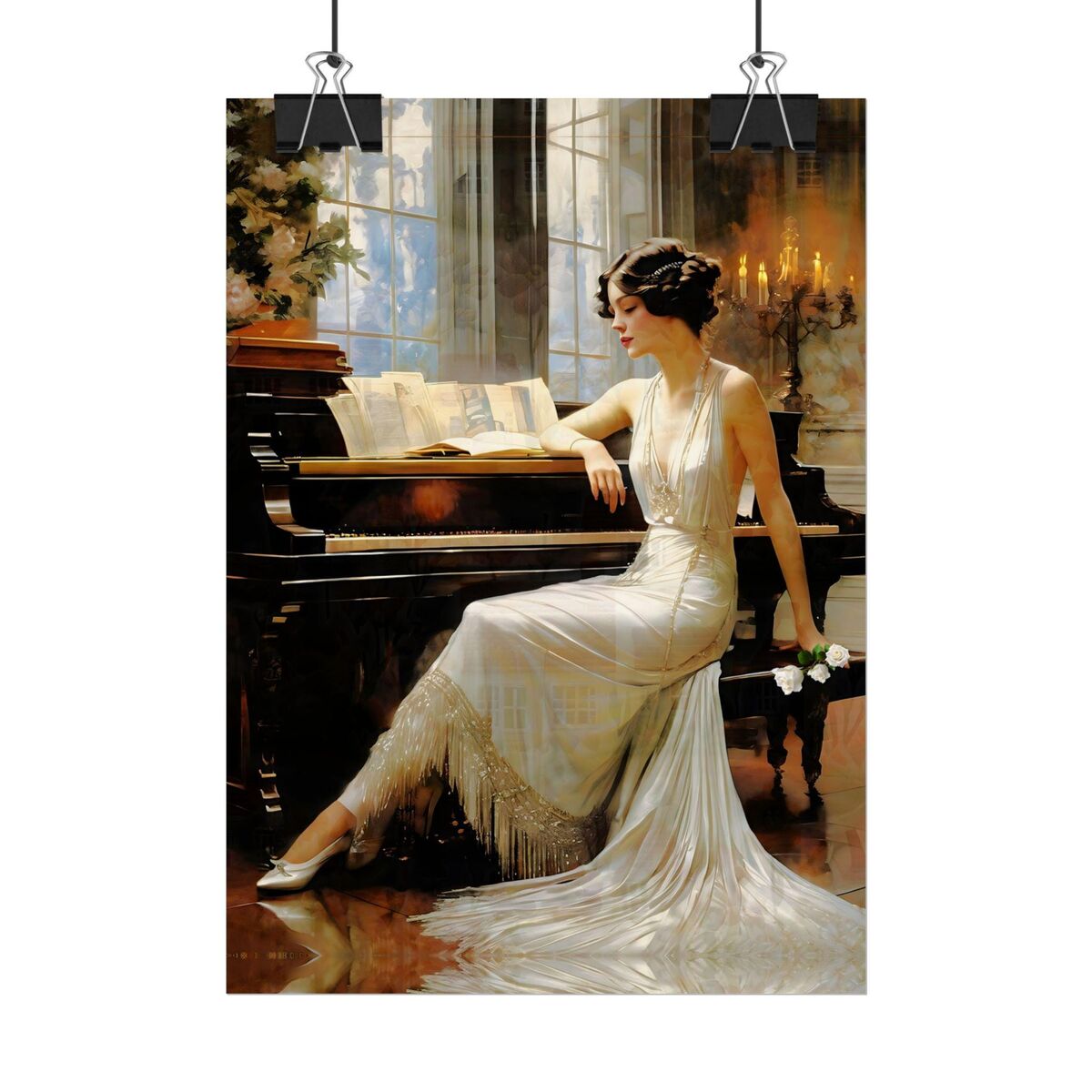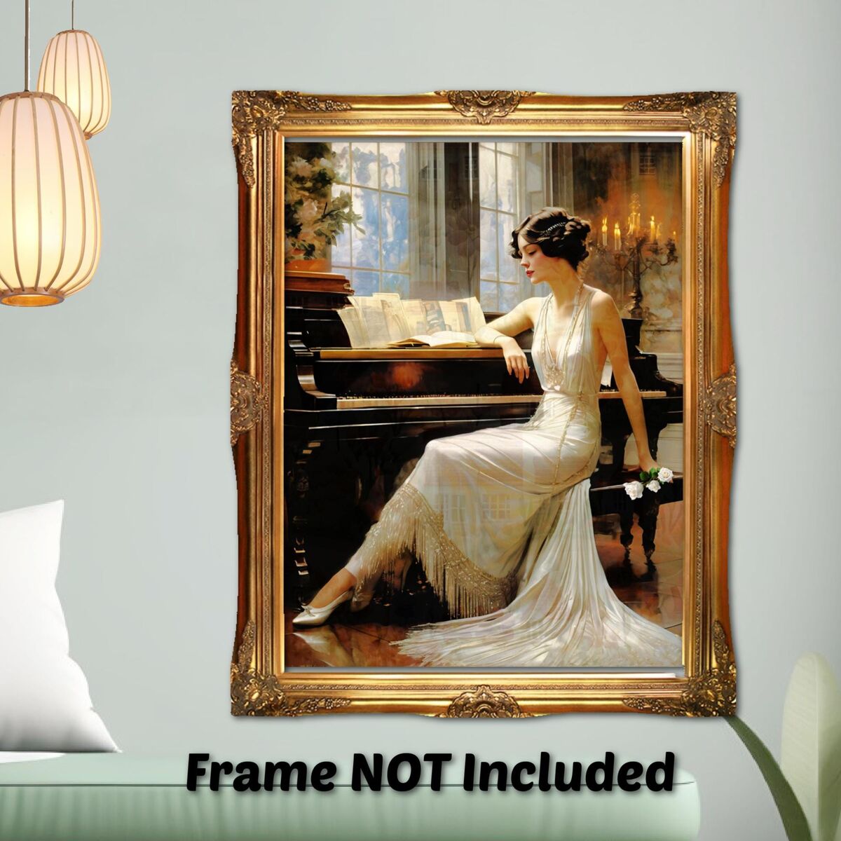 Art Deco Oil Painting Print Lady In White At Piano Gatsby Girl Retro Poster 1920s Elegant Flapper Wall Art