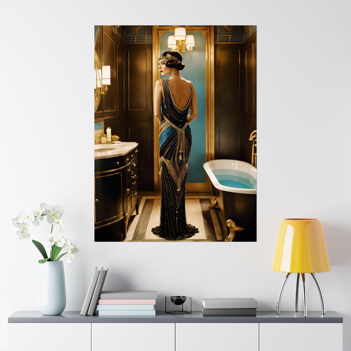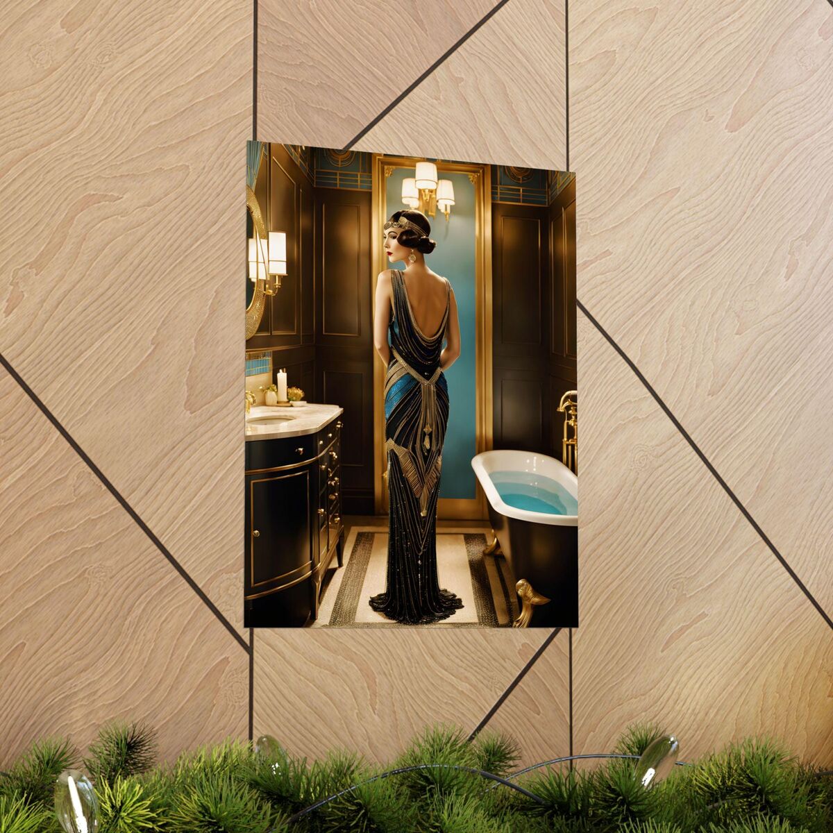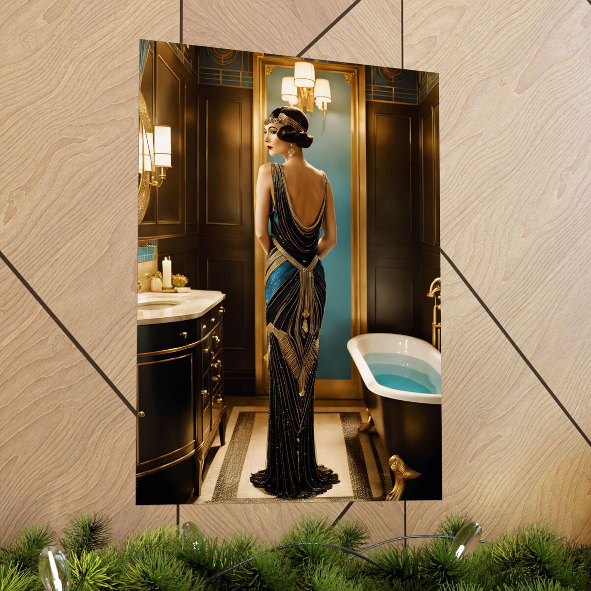 Gold Teal Art Deco Gatsby Girl 1920 Style Powder Room Bathroom Poster Print Wall Art Retro Home Decor