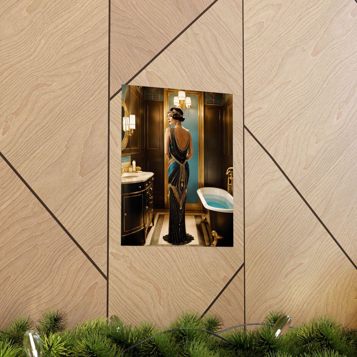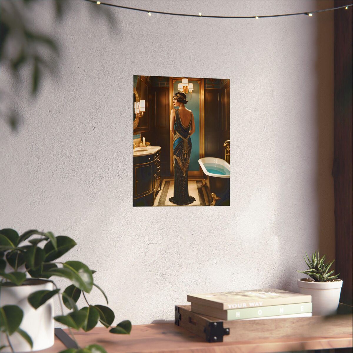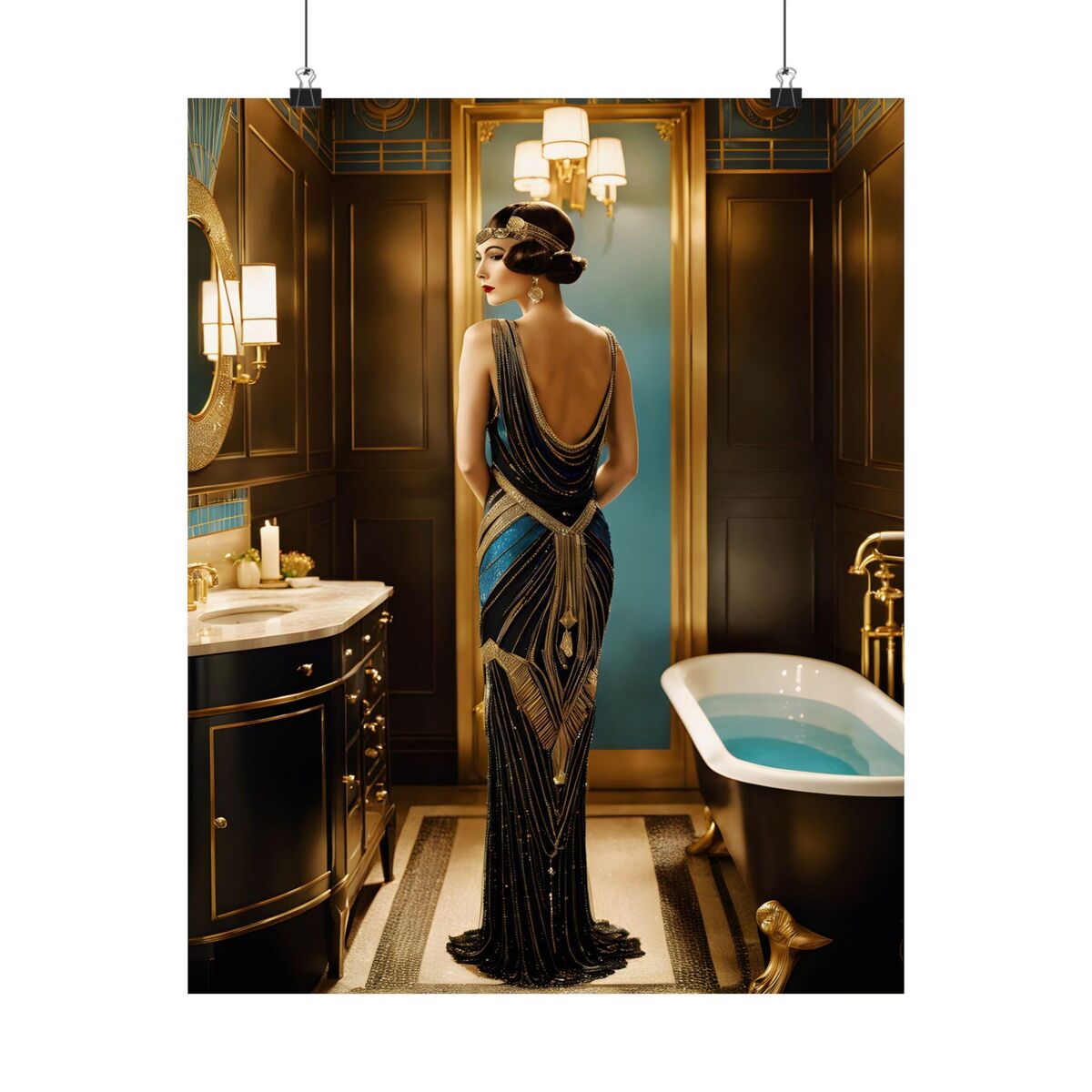 Gold Teal Art Deco Gatsby Girl 1920 Style Powder Room Bathroom Poster Print Wall Art Retro Home Decor