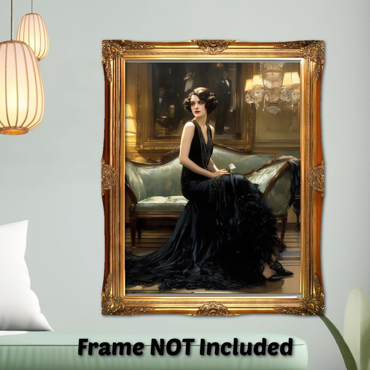 Art Print Art Deco Painting Print Gatsby Art Deco Oil Painting Old Hollywood Glamour Gatsby Girl Retro Poster 1920s Flapper Wall Art