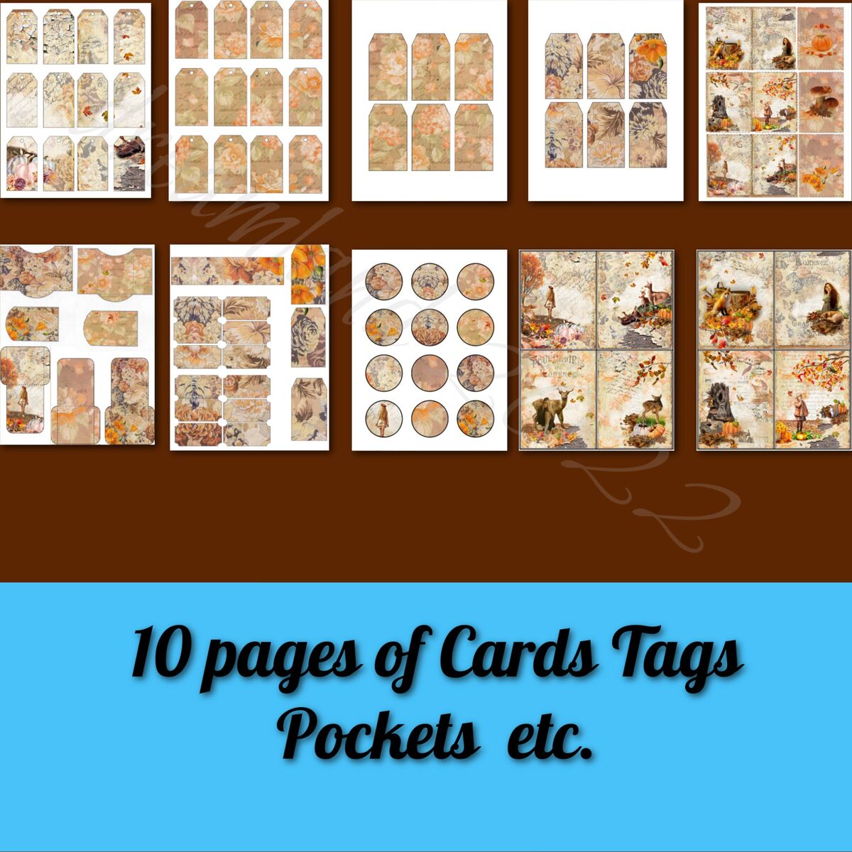 Autumn Junk Journal Printable Kit Lined Fall Pages Pumpkin Woodland Nature Wildlife Botanical Vintage Deer Ephemera Paper Digital Download