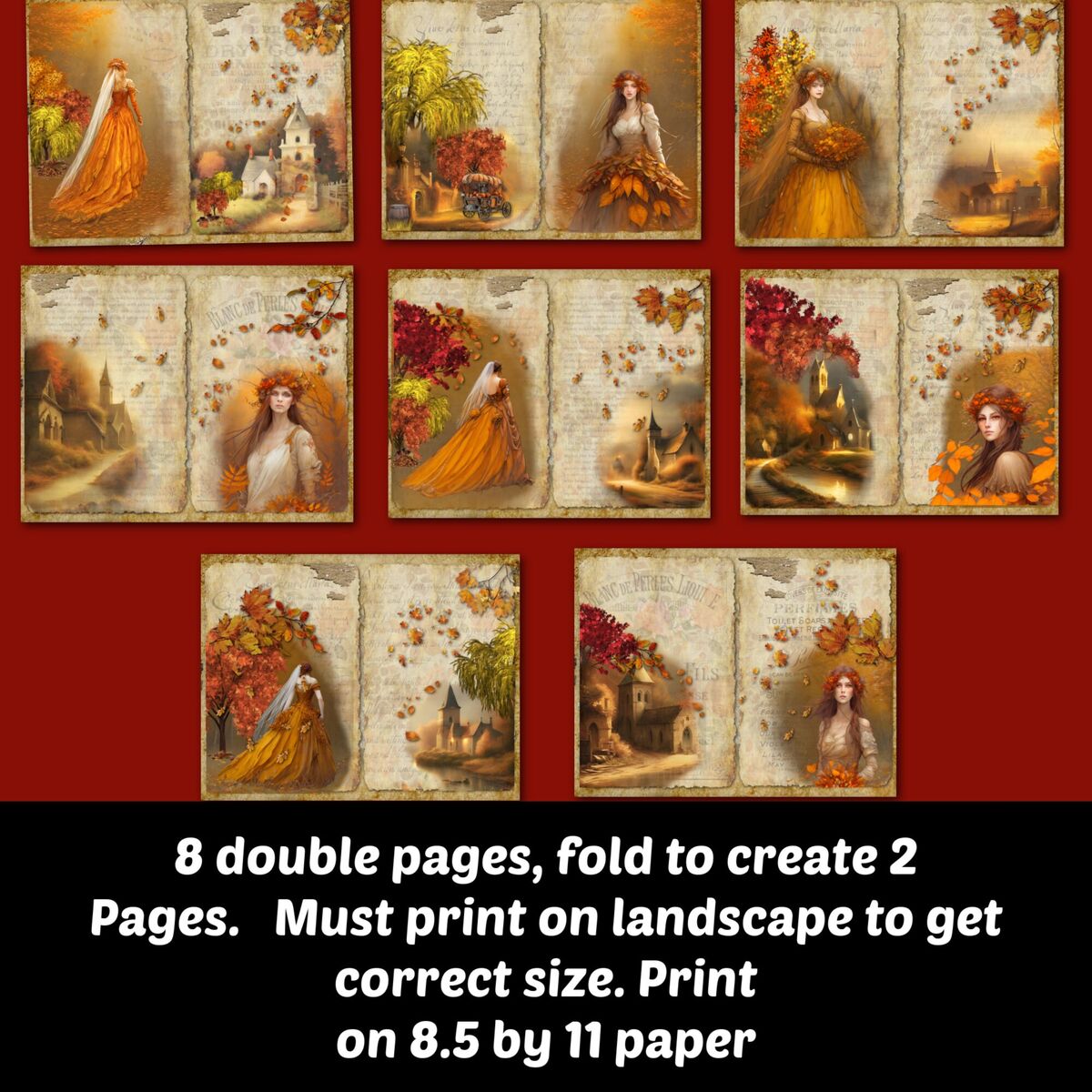 They can be printed on a standard printer size paper of 8.5 by 11 landscape mode, so each one can be folded to create a total of 16 pages