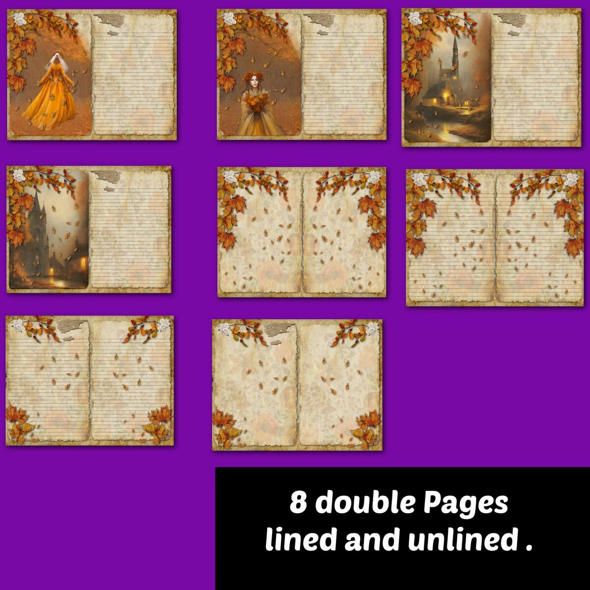 Victorian Autumn Shabby Junk Journal Printable Kit Lined Fall Pages Pumpkin Botanical Vintage Women Ladies Ephemera Paper Digital Download