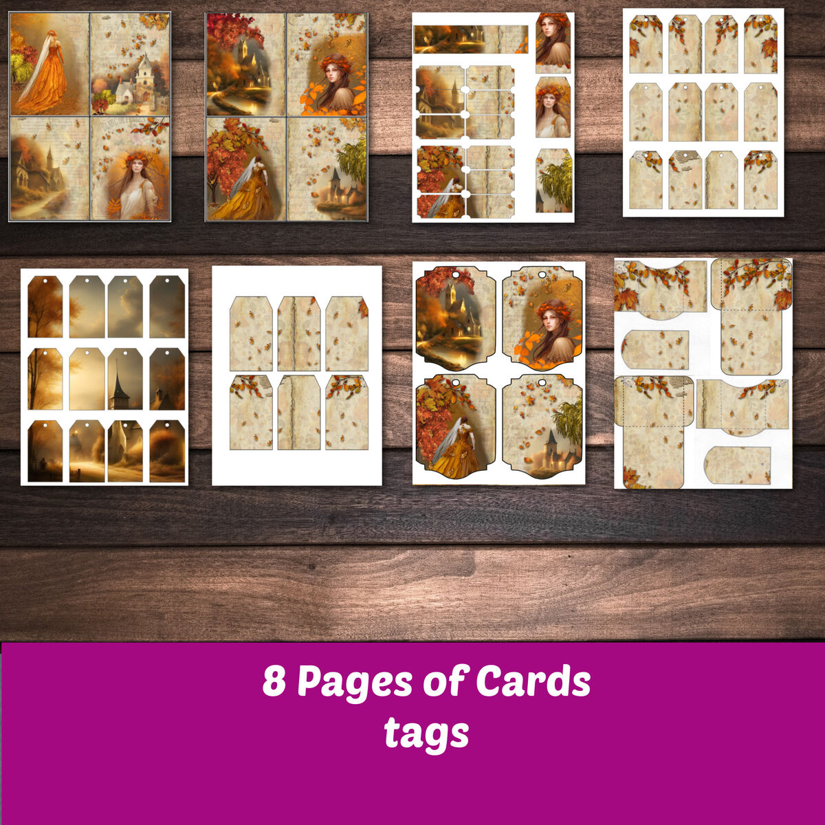 Autumn Shabby Junk Journal Woodland Bride Printable Kit Lined Fall Pages Botanical Vintage Women Ladies Ephemera Paper Digital Download