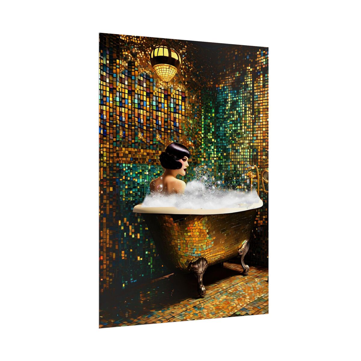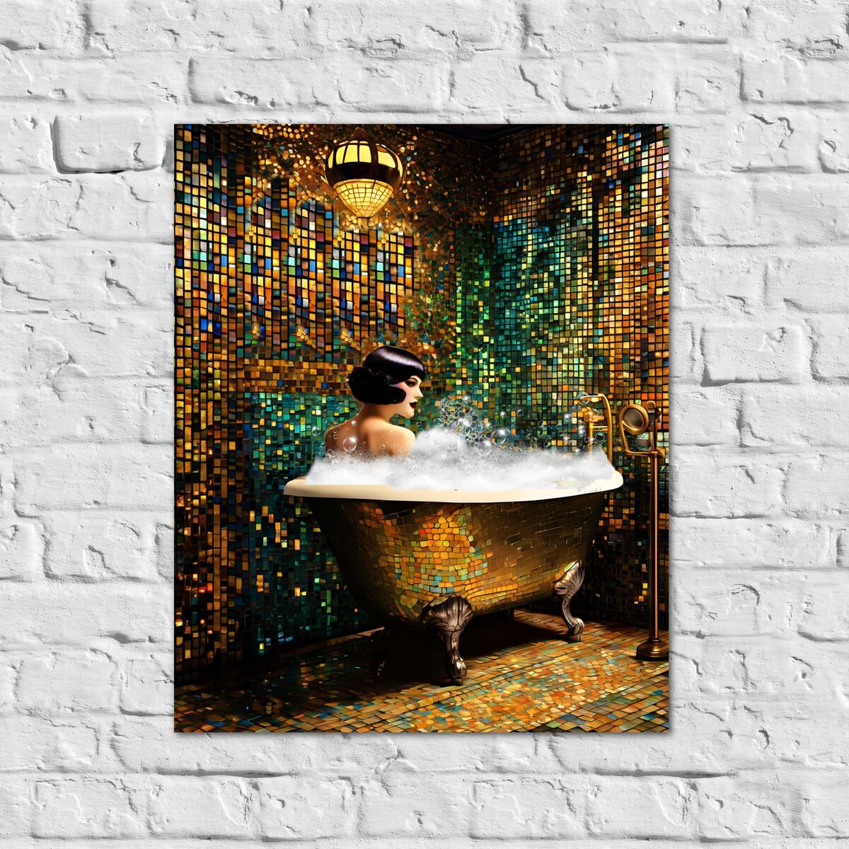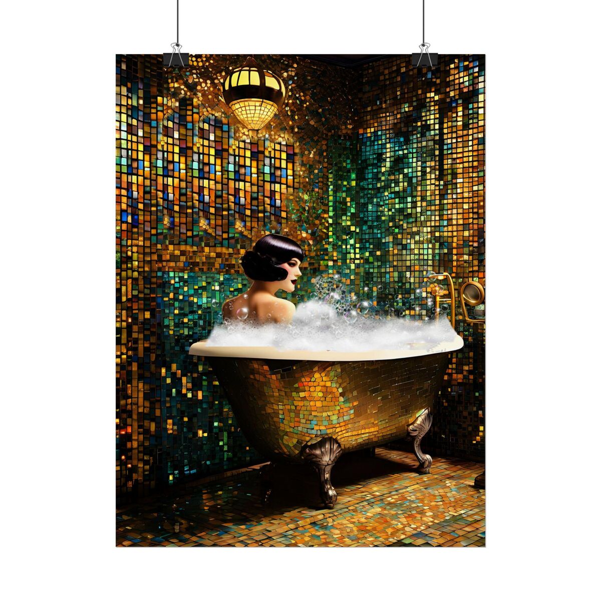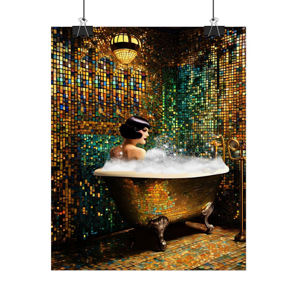 Bathroom Decor Flapper Art Deco Gatsby Girl 1920s Retro Style Painting Poster Print Wall Art Girl Woman In Bathtub Home Decor