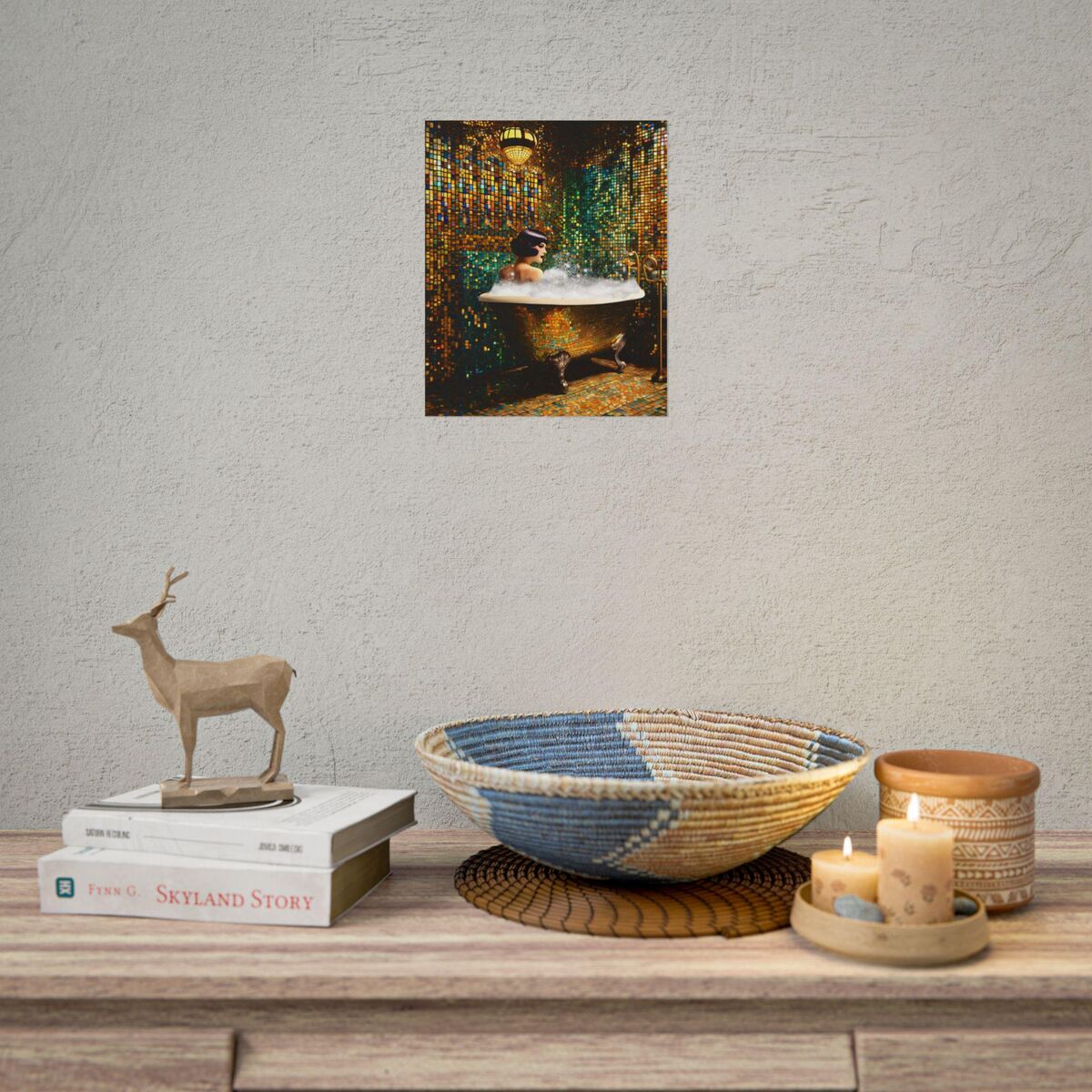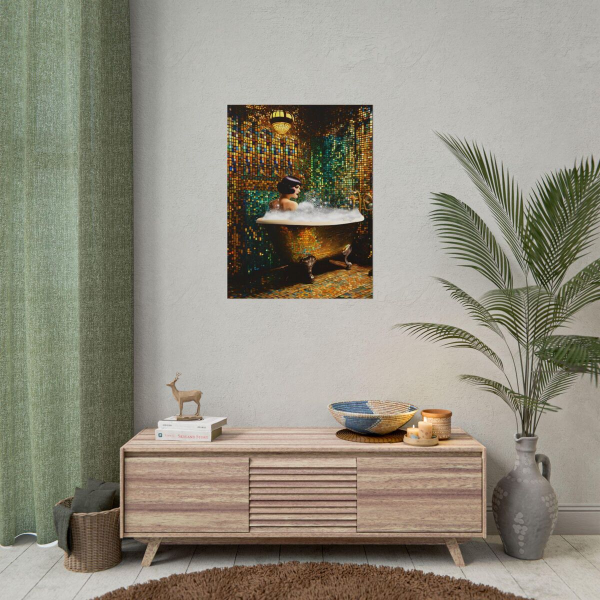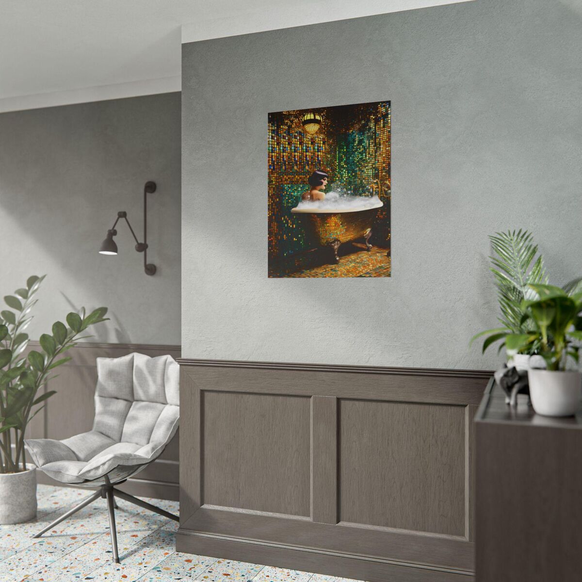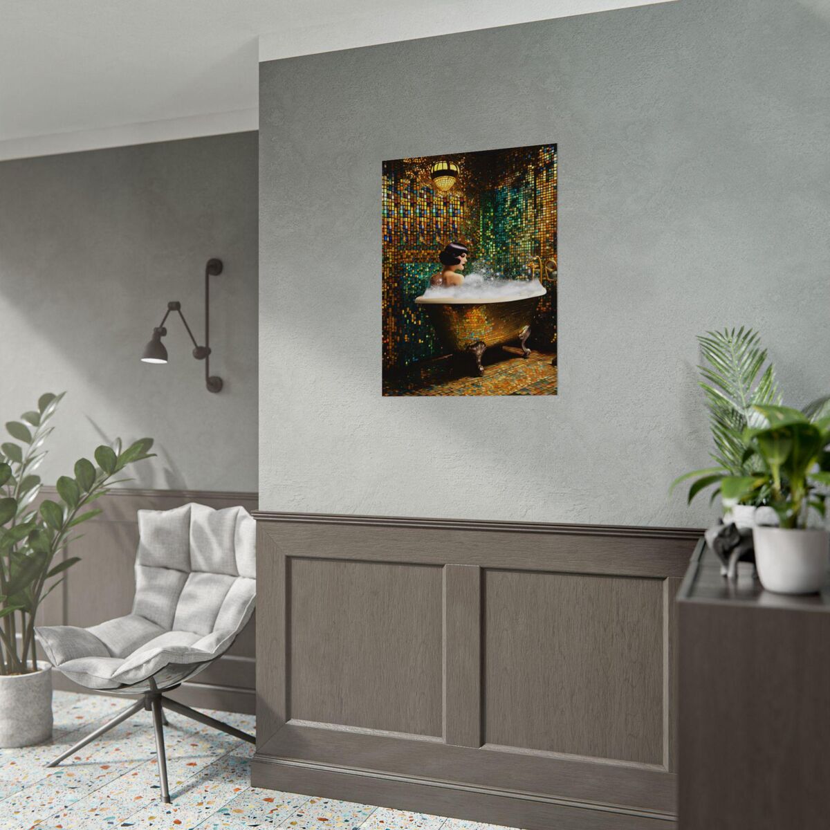 Bathroom Decor Flapper Art Deco Gatsby Girl 1920s Retro Style Painting Poster Print Wall Art Girl Woman In Bathtub Home Decor