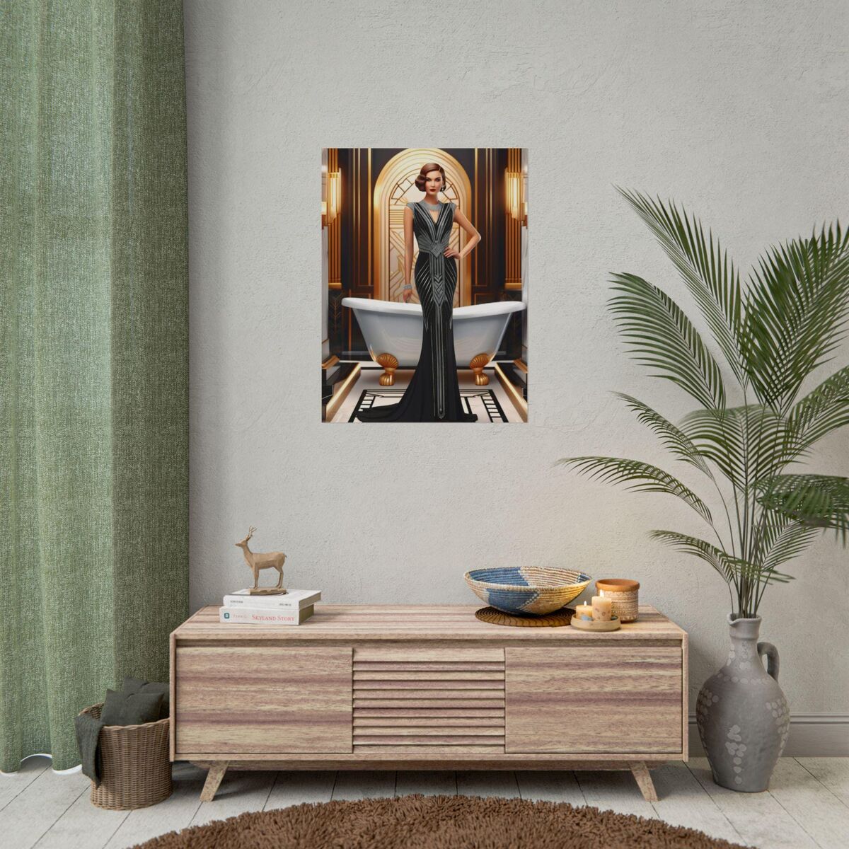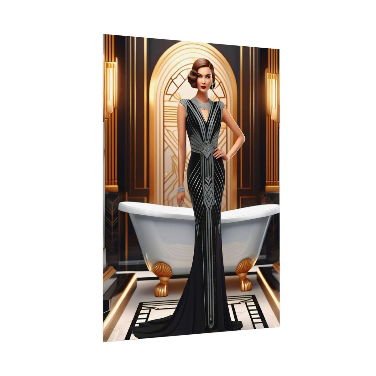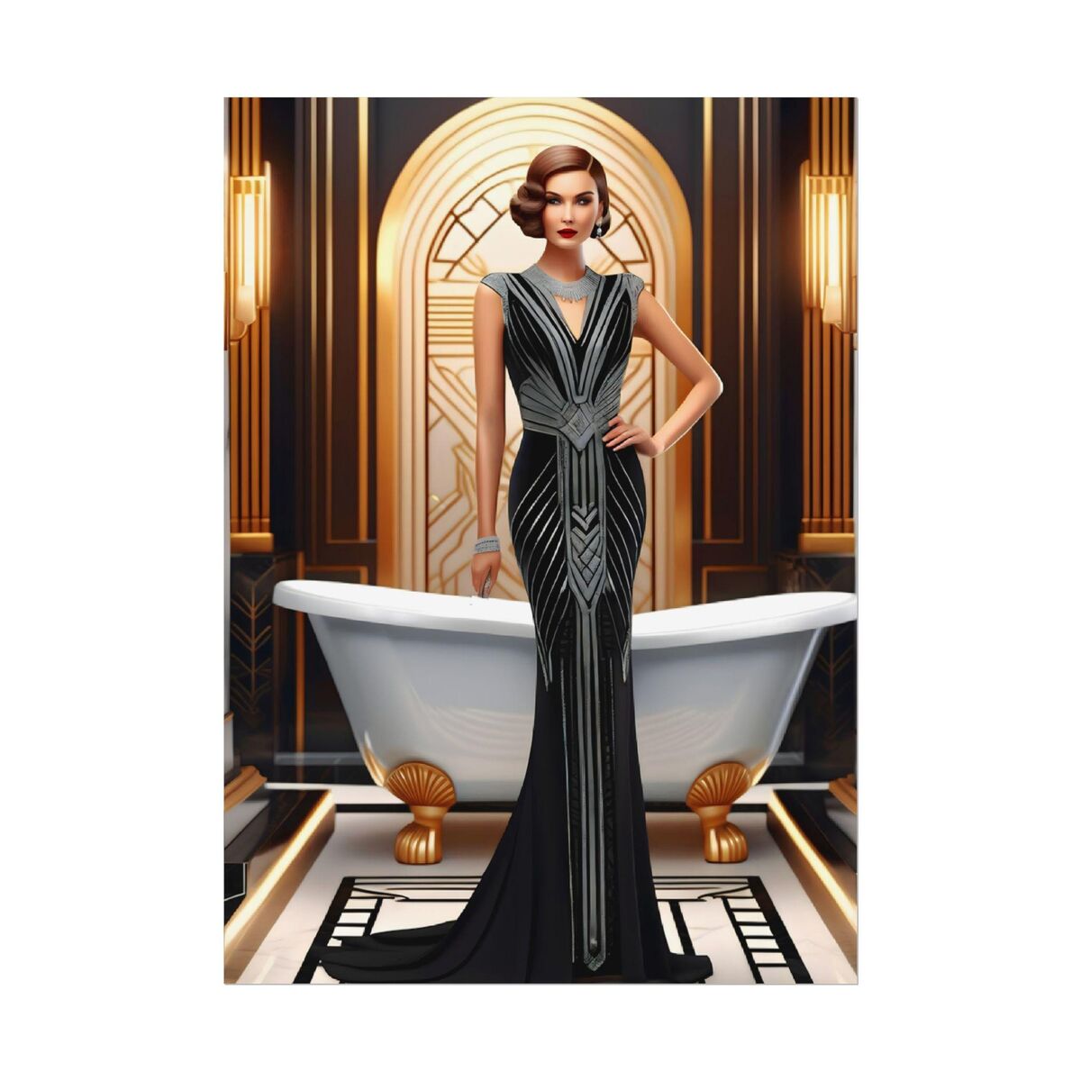 Bathroom Print Art Deco Black Gold Gatsby Girl 1920s Style Flapper Gatsby Girl Powder Room Bathroom Poster Print Wall Art Retro Home Decor