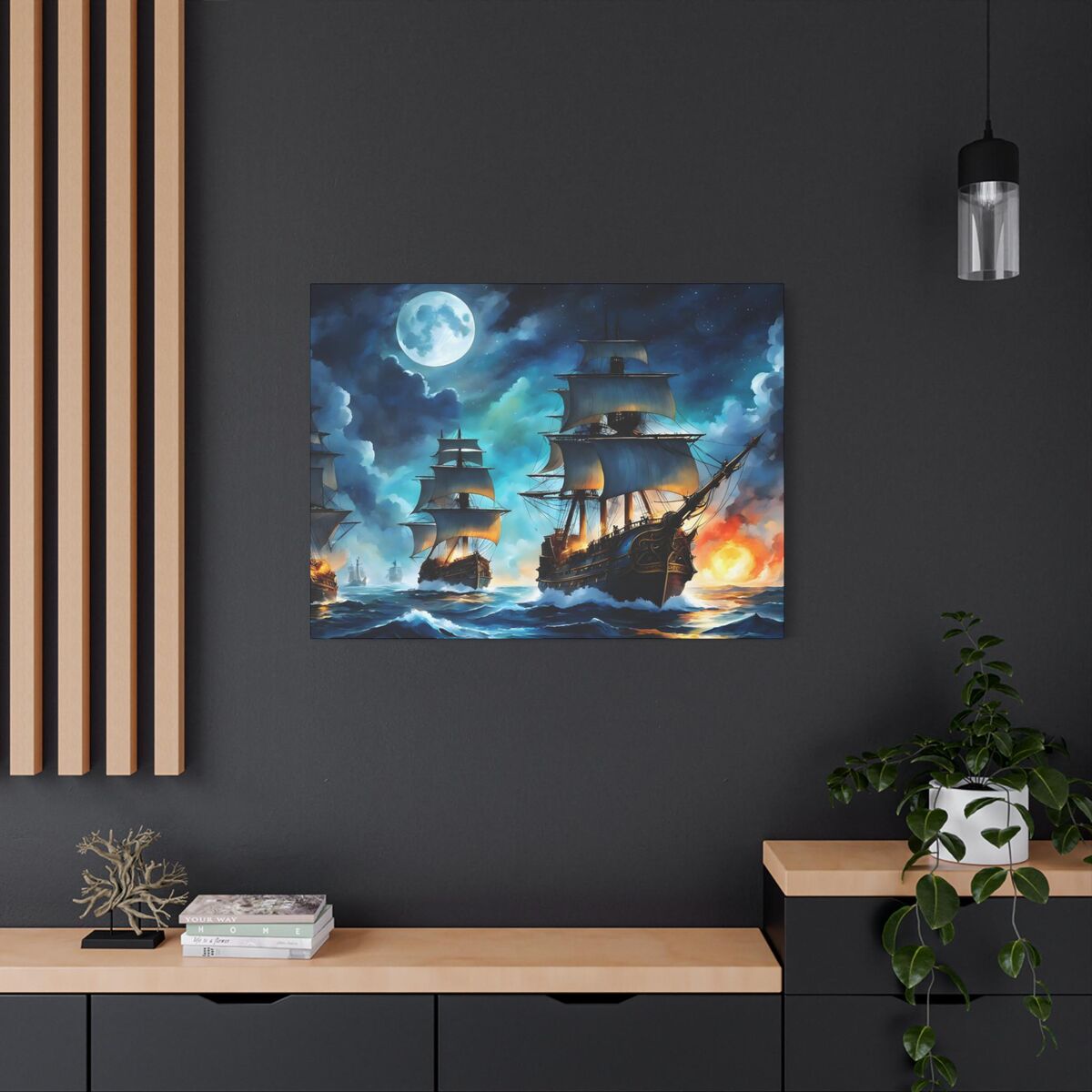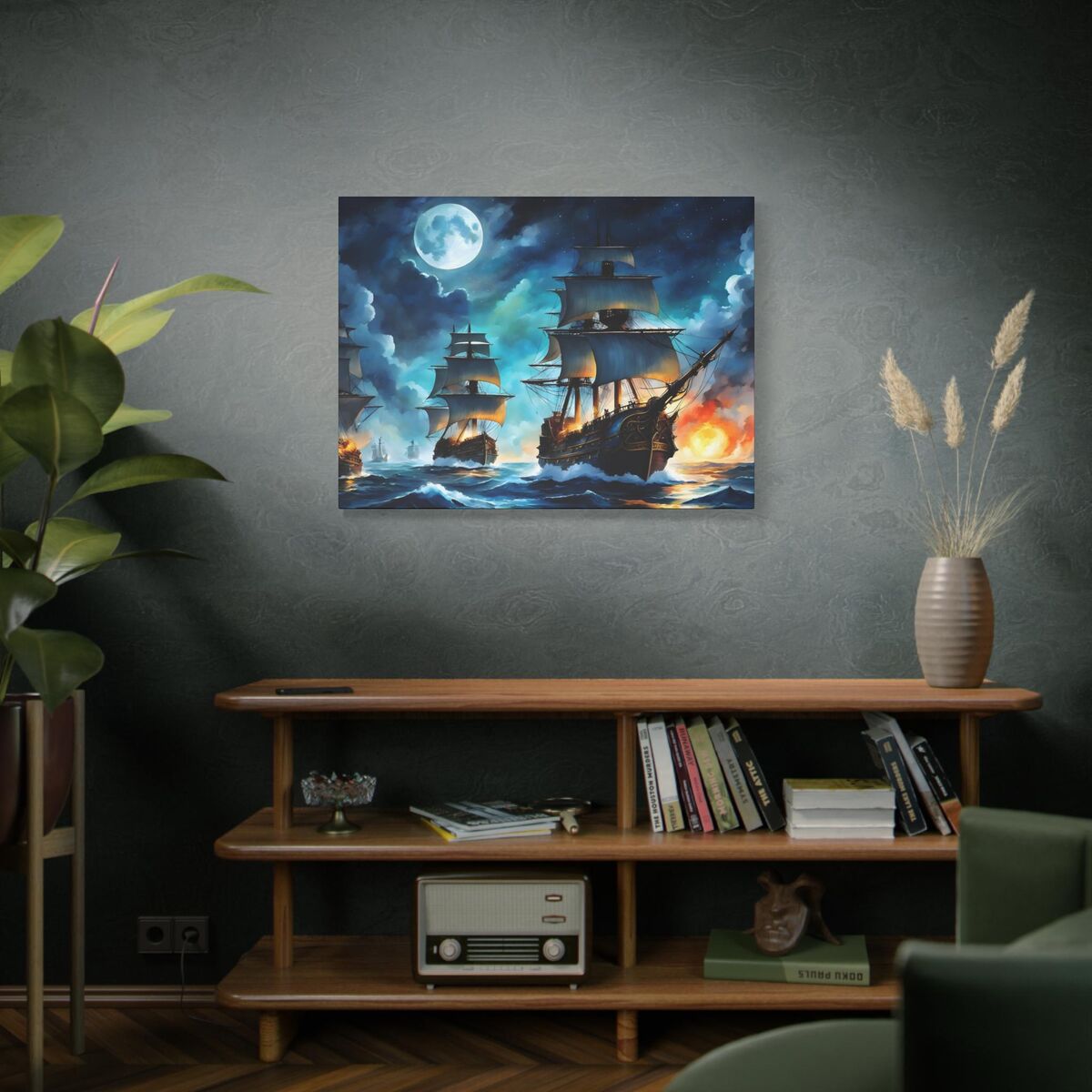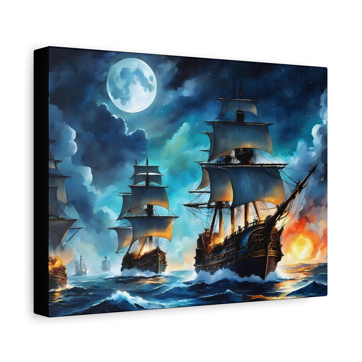 Battle Of The Sea Oil Painting Canvas Print Nautical Seascape Ships Wall Art Moody Dark Academia Large Size Framed Canvas Print