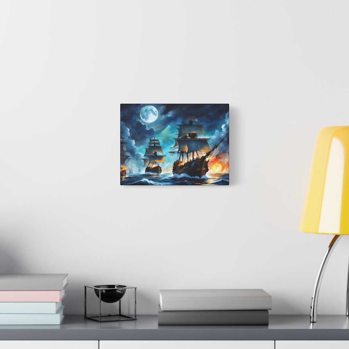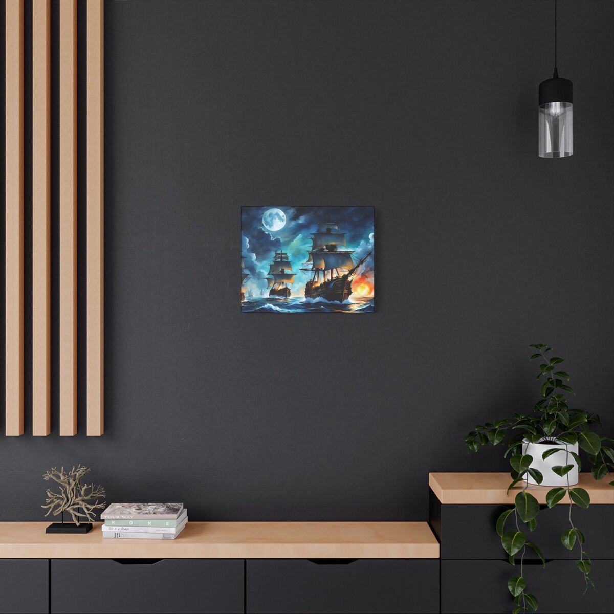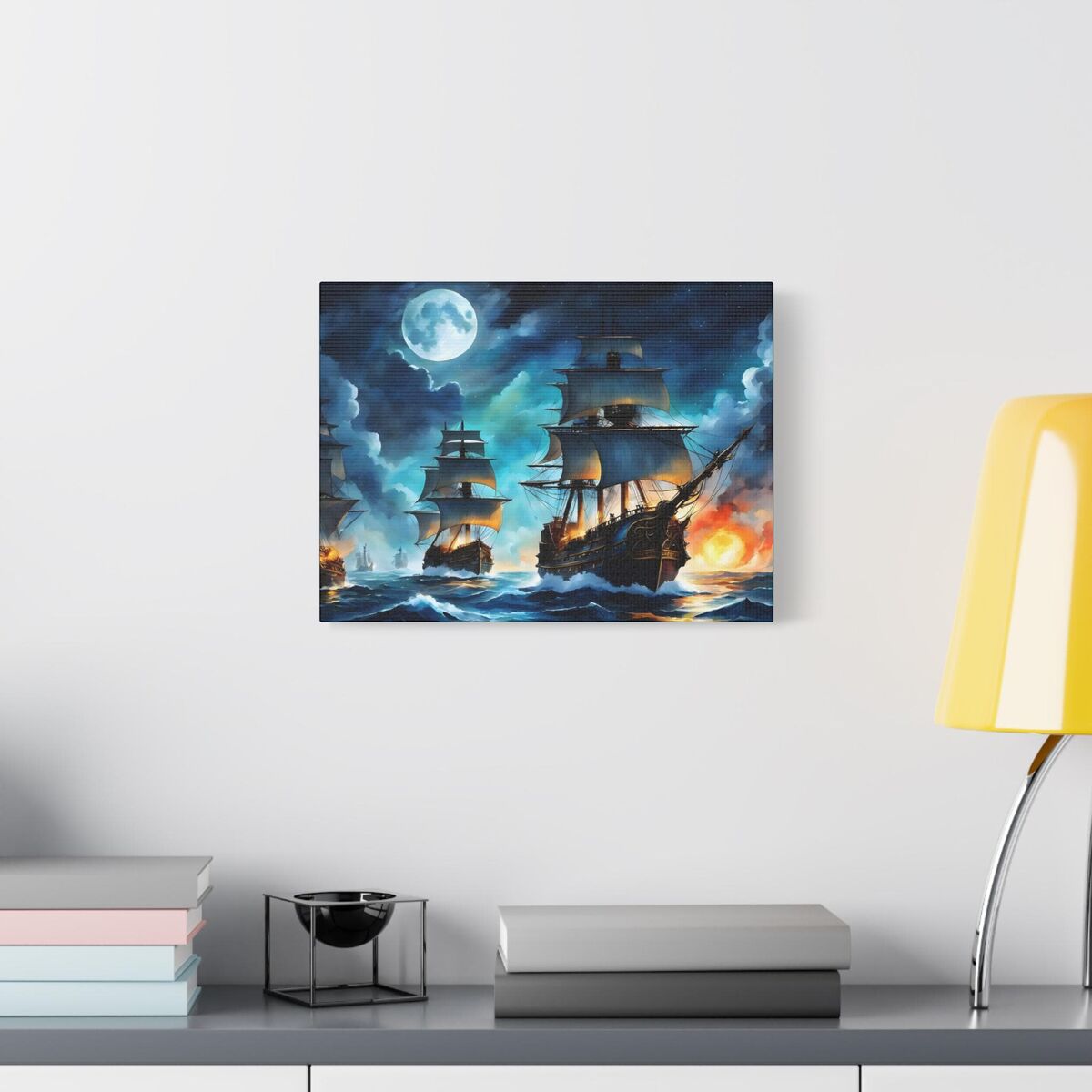Battle Of The Sea Oil Painting Canvas Print Nautical Seascape Ships Wall Art Moody Dark Academia Large Size Framed Canvas Print