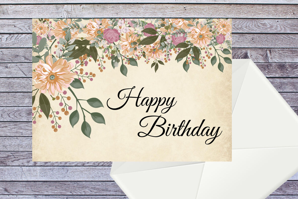 Happy Birthday Printable Card Instant Download Digital Greeting Card Blank Floral DIY