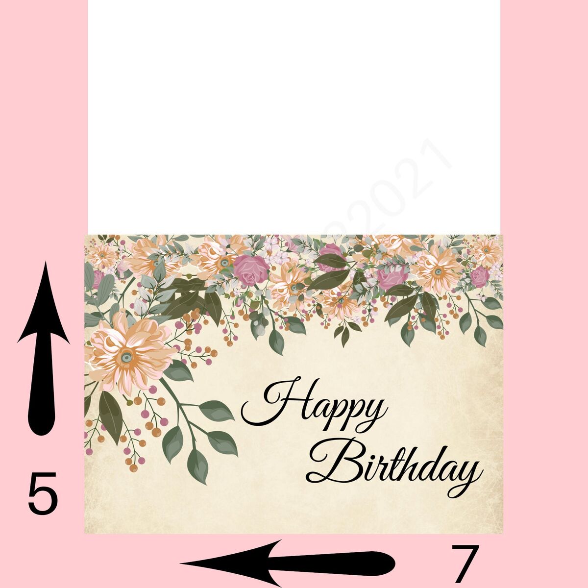 Floral Card Happy Birthday Greeting Printable Card Instant Download Digital Card Blank Floral DIY