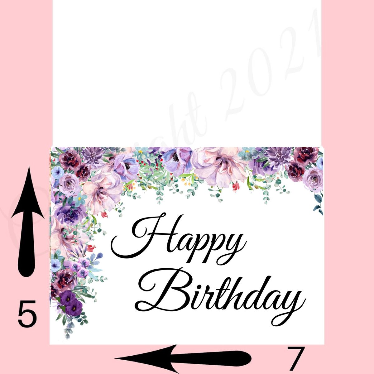 Printable Card Birthday Greeting Happy Birthday Instant Download Digital Card Blank Floral DIY