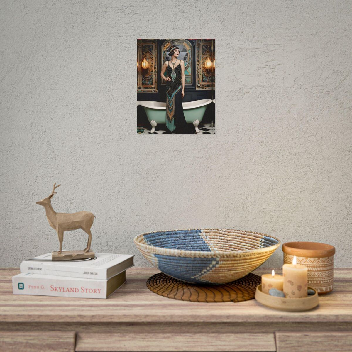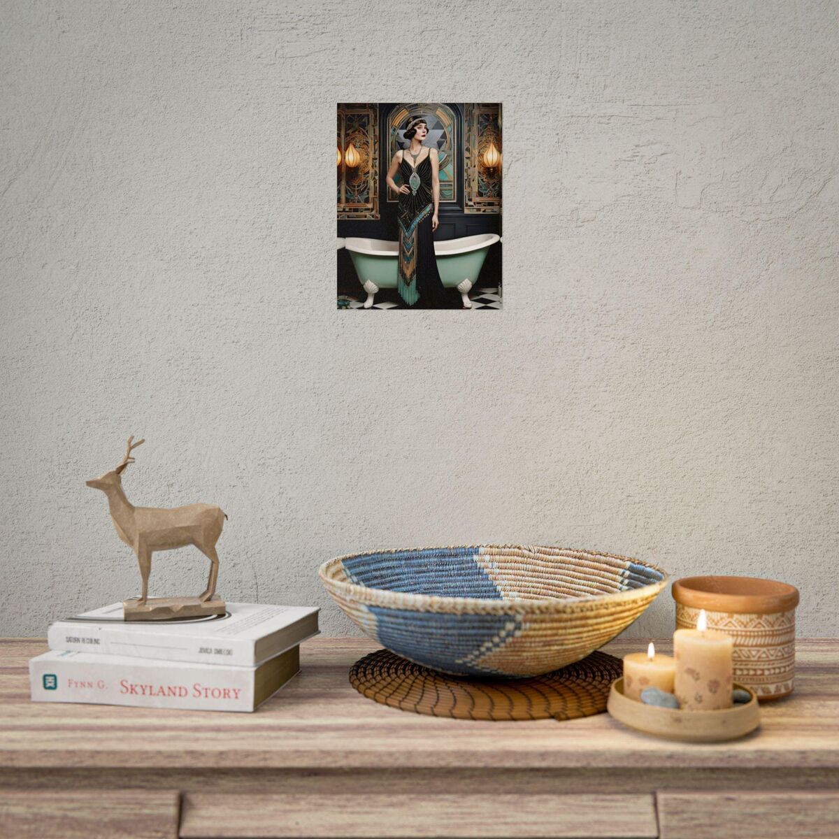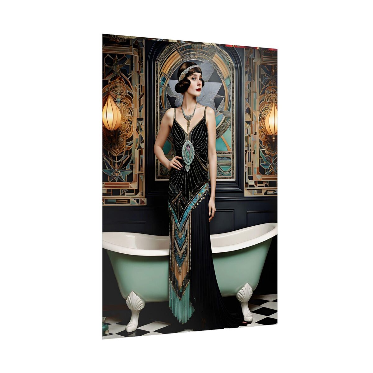 Black Teal Art Deco Gatsby Girl 1920 Style Powder Room Bathroom Poster Print Wall Art Retro Home Decor