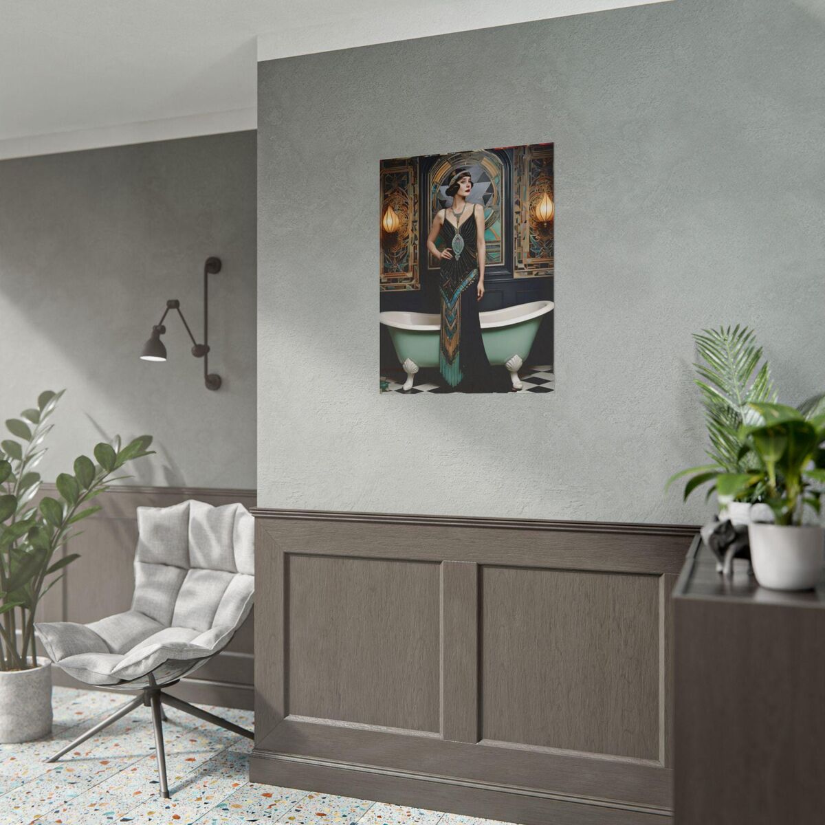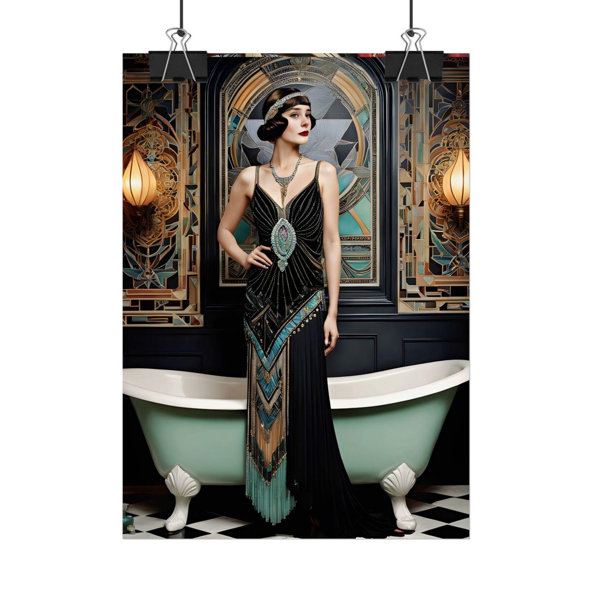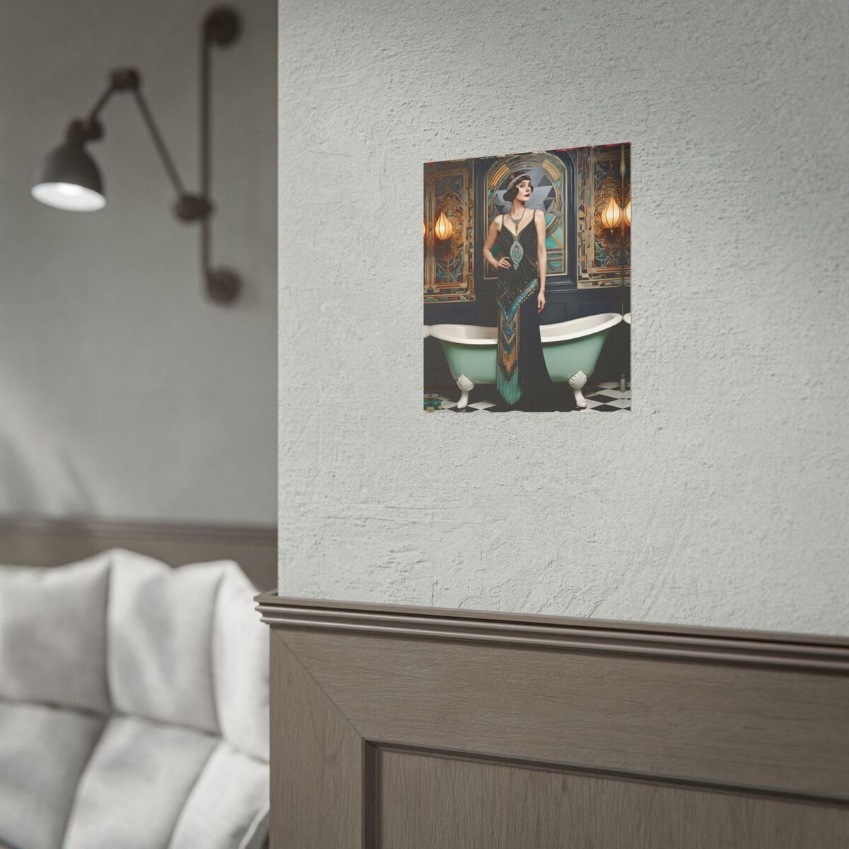 Black Teal Art Deco Gatsby Girl 1920 Style Powder Room Bathroom Poster Print Wall Art Retro Home Decor