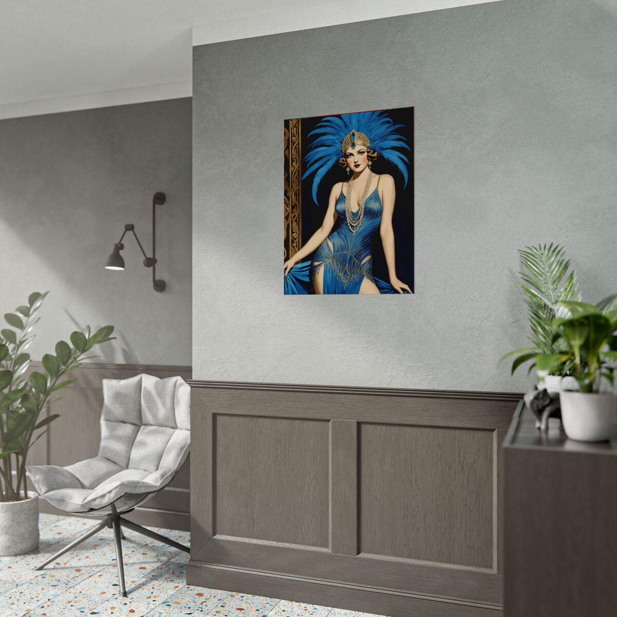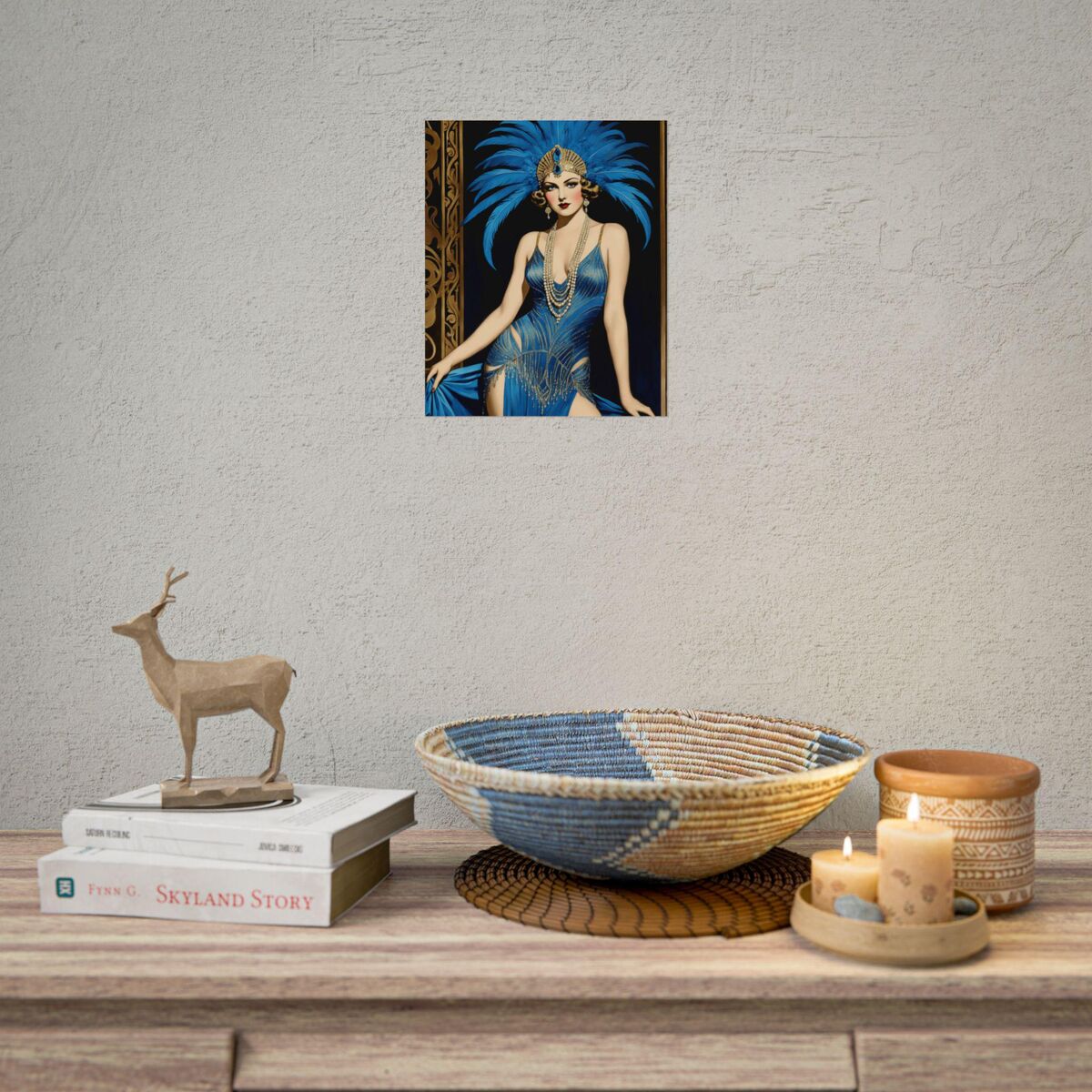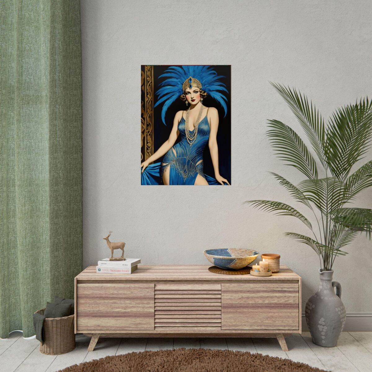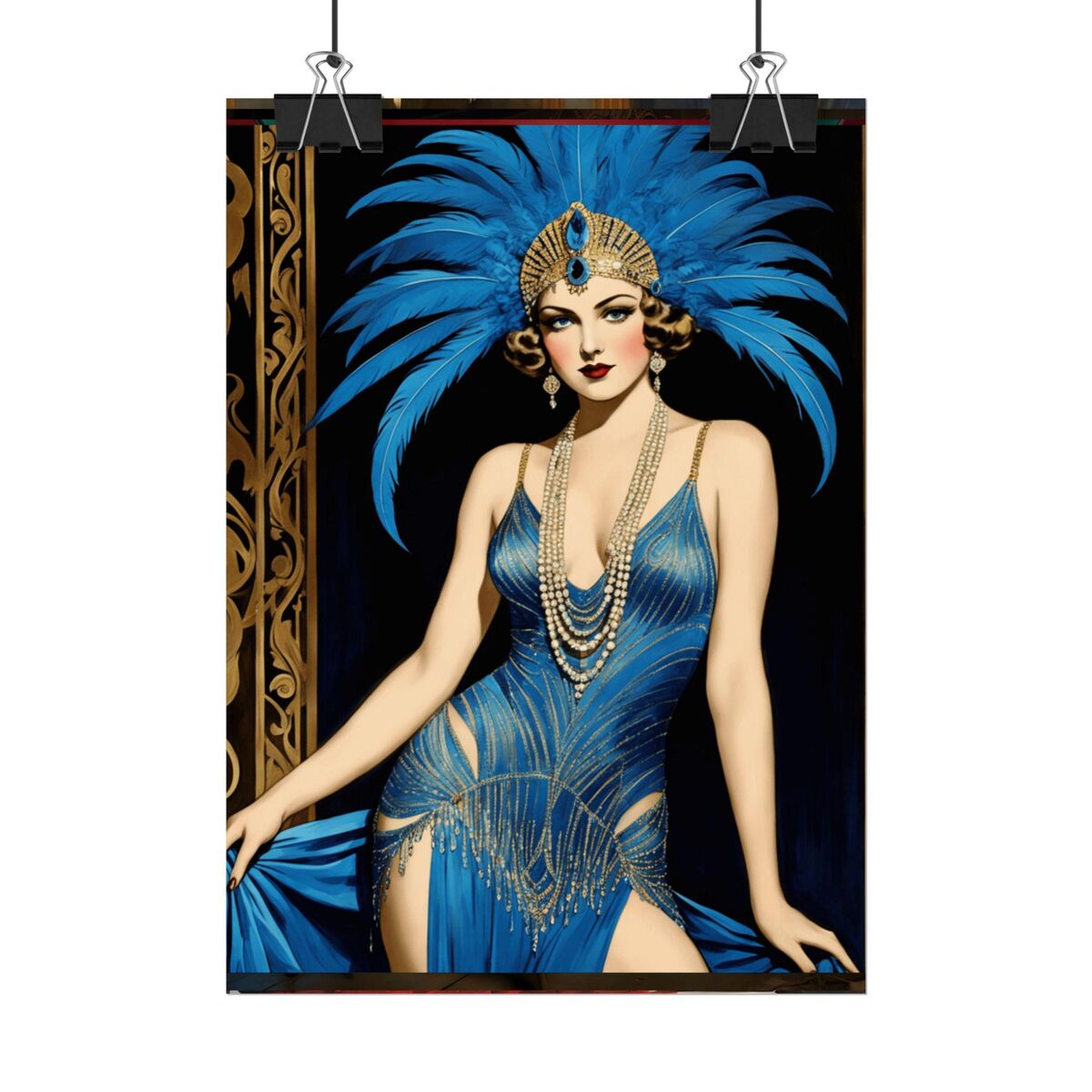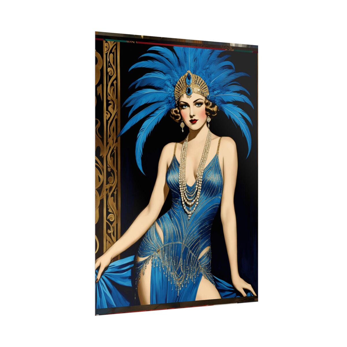 Blue Showgirl Art Deco Poster Print Flapper Wall Art Painting Print Gatsby Old Hollywood Girl Glamour Gatsby Retro Poster 1920s Wall Art
