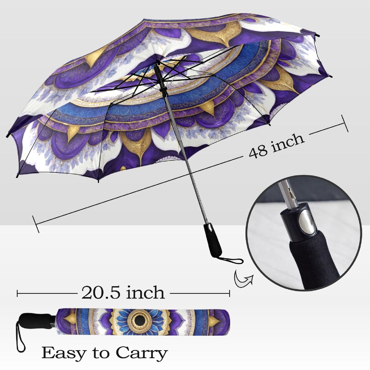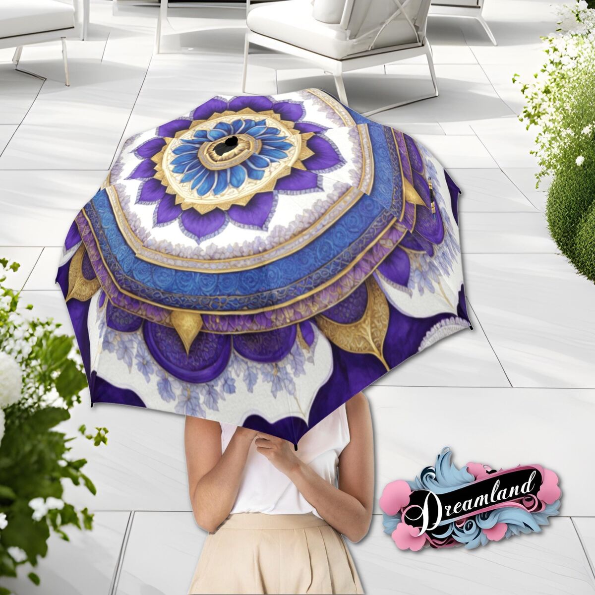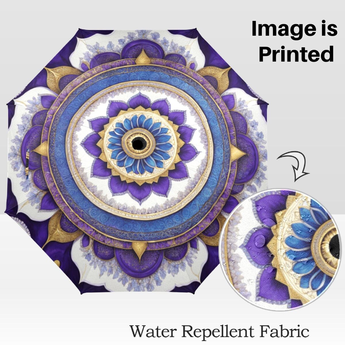 Boho Mandella Umbrella Art Nouveau Blue Purple Printed Parasol Semi-Automatic Waterproof Foldable Umbrella