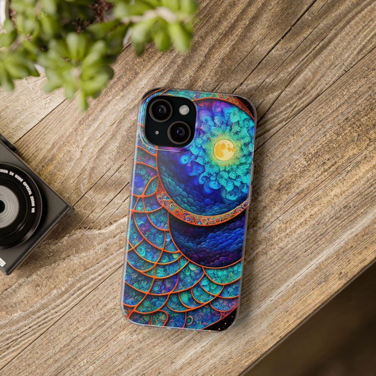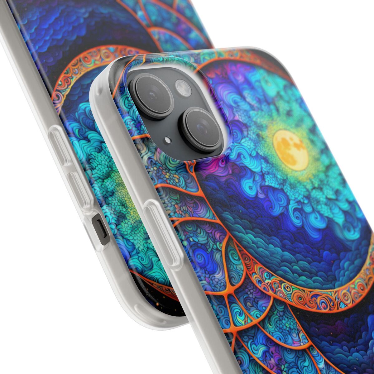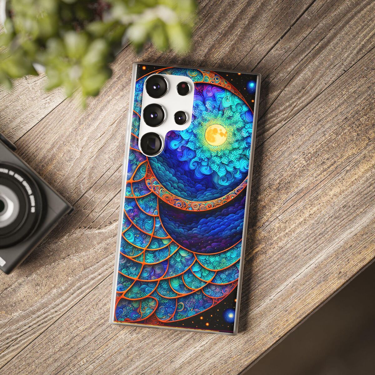 The moon mosaic Phone Case is a stunning accessory designed for various iPhone and Samsung Galaxy models, including the latest iPhone 15, 14, 13, 12, 11, and Samsung S23, S22, and S21. This flexi phone case features an exquisite design inspired by traditional Asian jade carvings, showcasing delicate stars set against a serene landscape. The intricate detailing not only enhances the aesthetic appeal but also reflects a rich cultural heritage, making it a perfect choice for those who appreciate artistry and elegance.