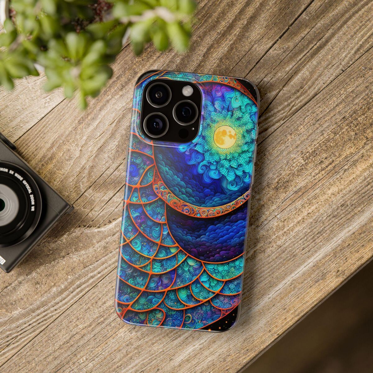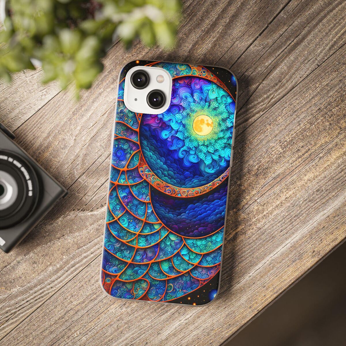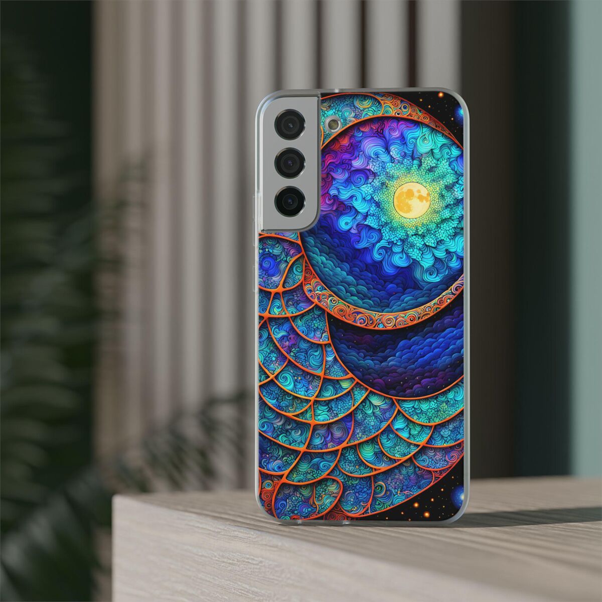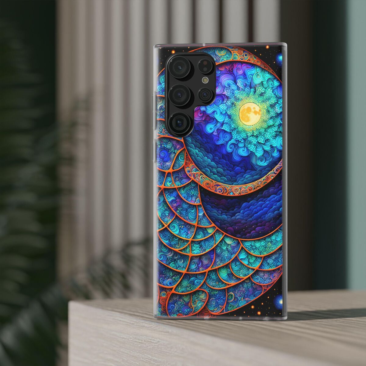 The moon mosaic Phone Case is a stunning accessory designed for various iPhone and Samsung Galaxy models, including the latest iPhone 15, 14, 13, 12, 11, and Samsung S23, S22, and S21. This flexi phone case features an exquisite design inspired by traditional Asian jade carvings, showcasing delicate stars set against a serene landscape. The intricate detailing not only enhances the aesthetic appeal but also reflects a rich cultural heritage, making it a perfect choice for those who appreciate artistry and elegance.