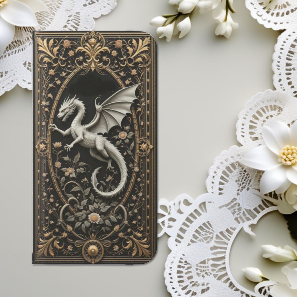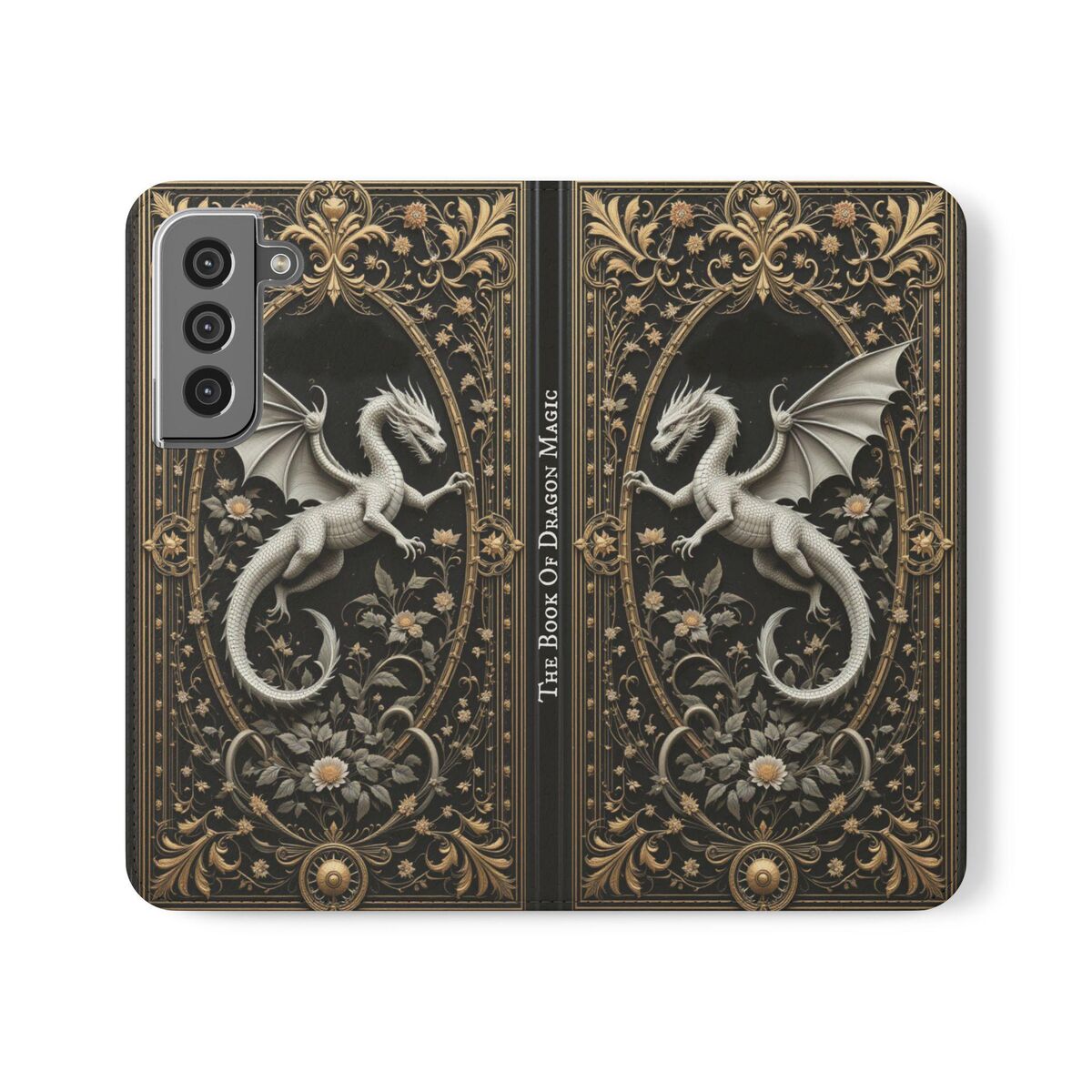 Book Phone Case Wallet Dragon Magic Spell Grimoire Dark Academia Flip Case Card Case Fits iphone 16 15 14 Galaxy S25 And More