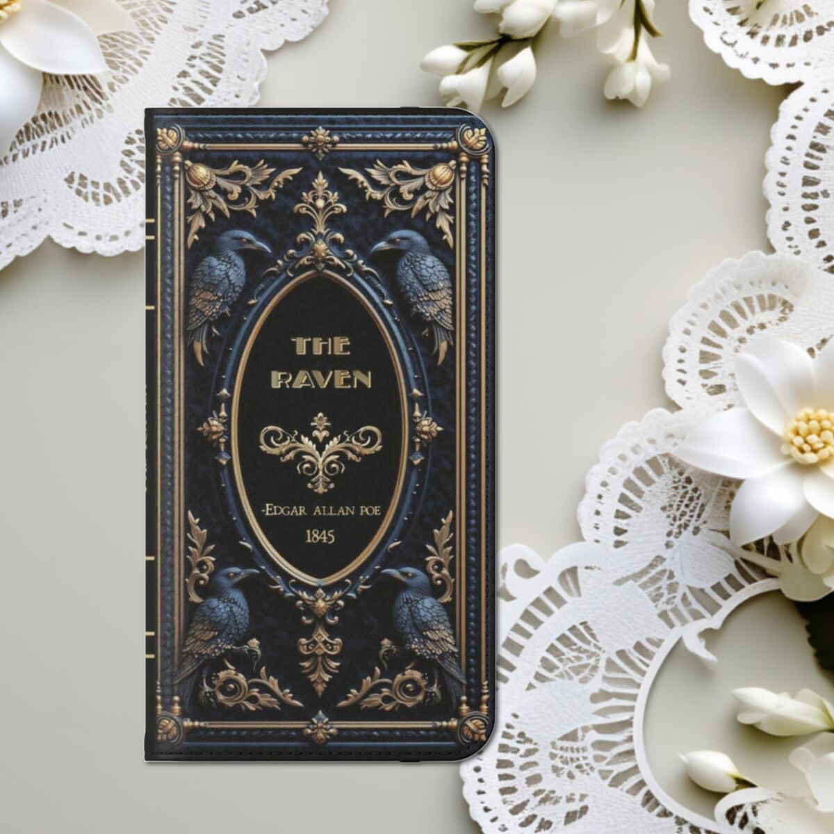 Book Phone Case Wallet Witchy Book Raven Edgar Allan Poe Gothic Dark Academia Flip Case Card Case Fits iphone 16 15 14 Galaxy S22 And More