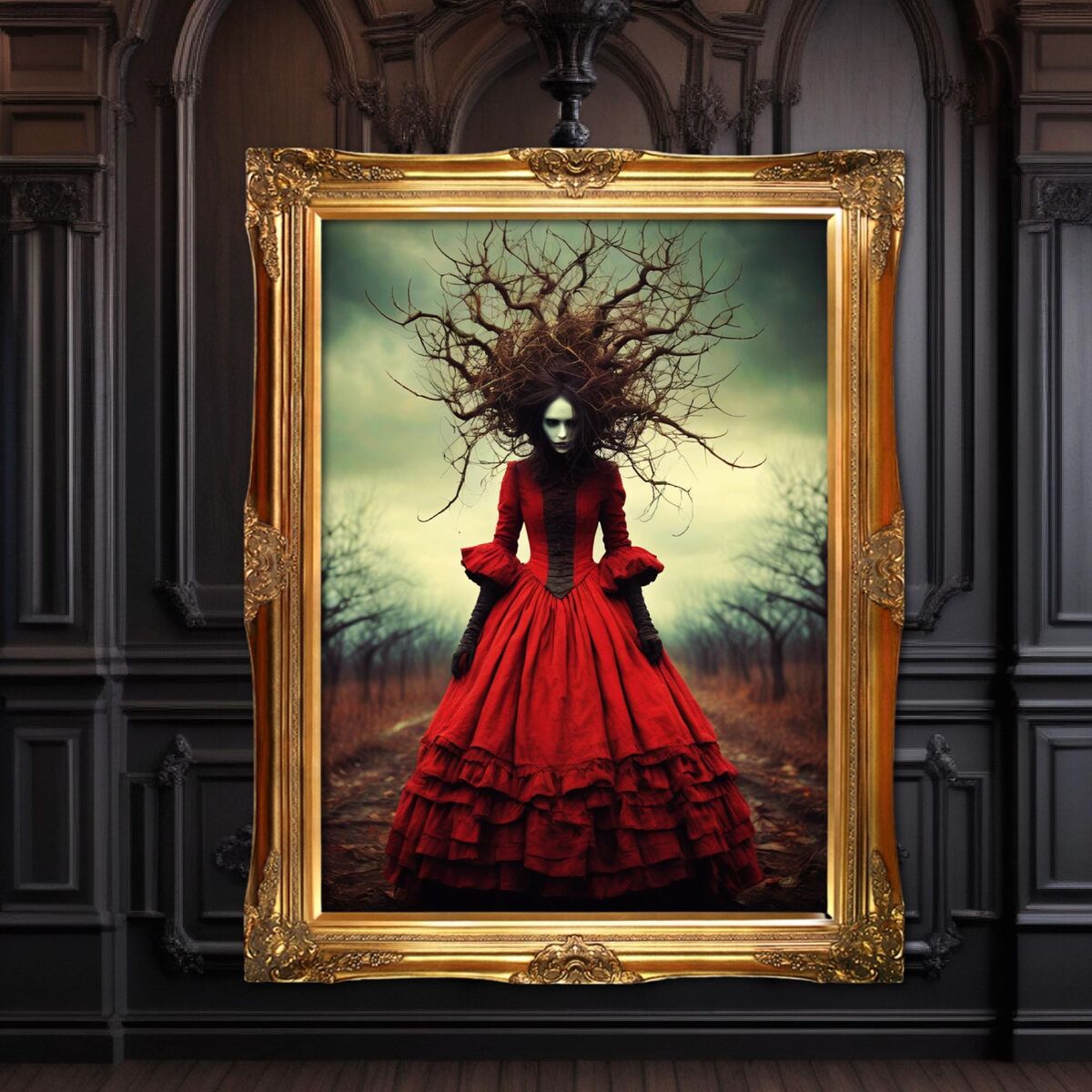 Enhance the ambiance of your living space with this captivating painting Print. This exquisite dark academia print features a mesmerizing briar witch, exuding an enchanting aura that will add a touch of mystique to any room. This is a print of the original painting, and is exclusive to Dreamland