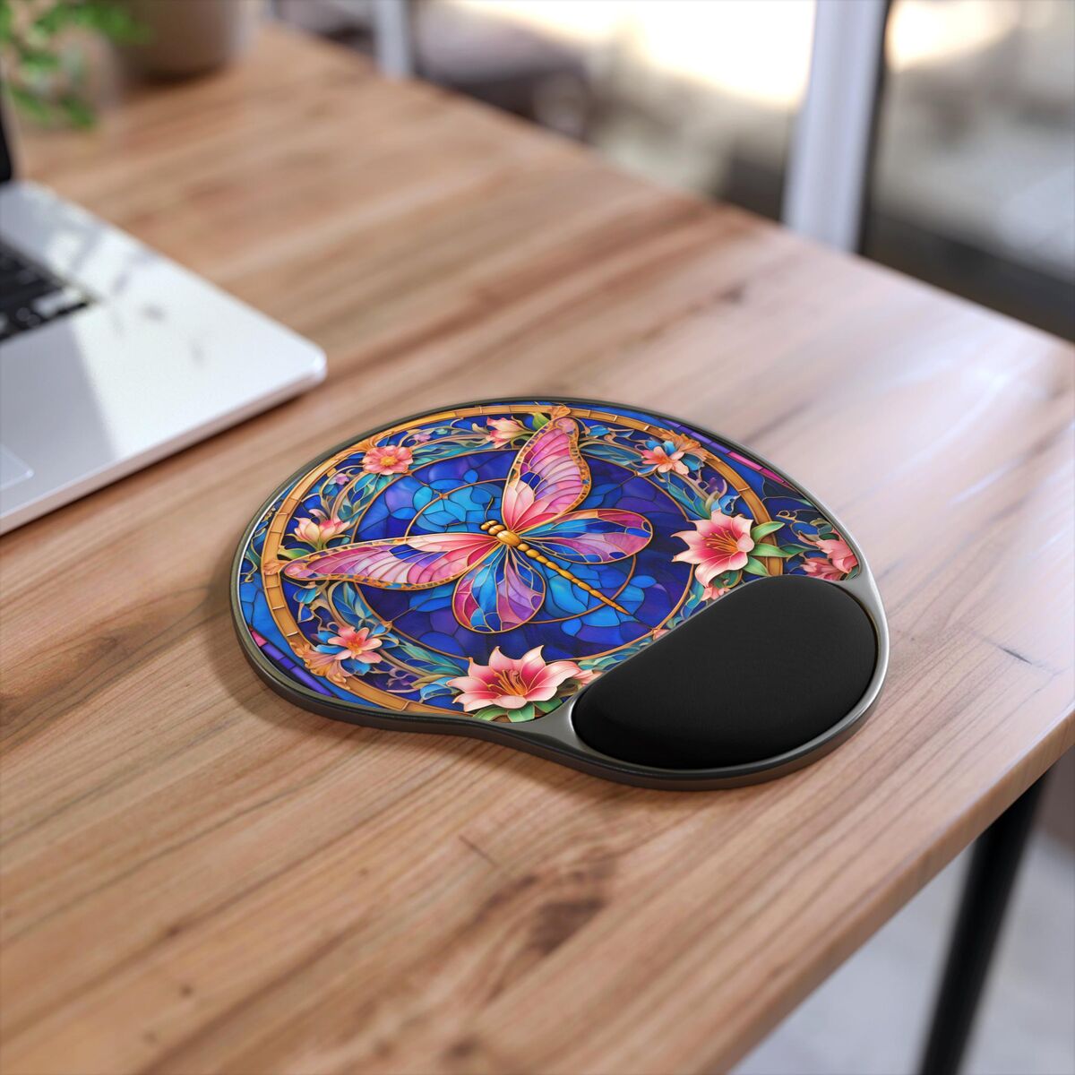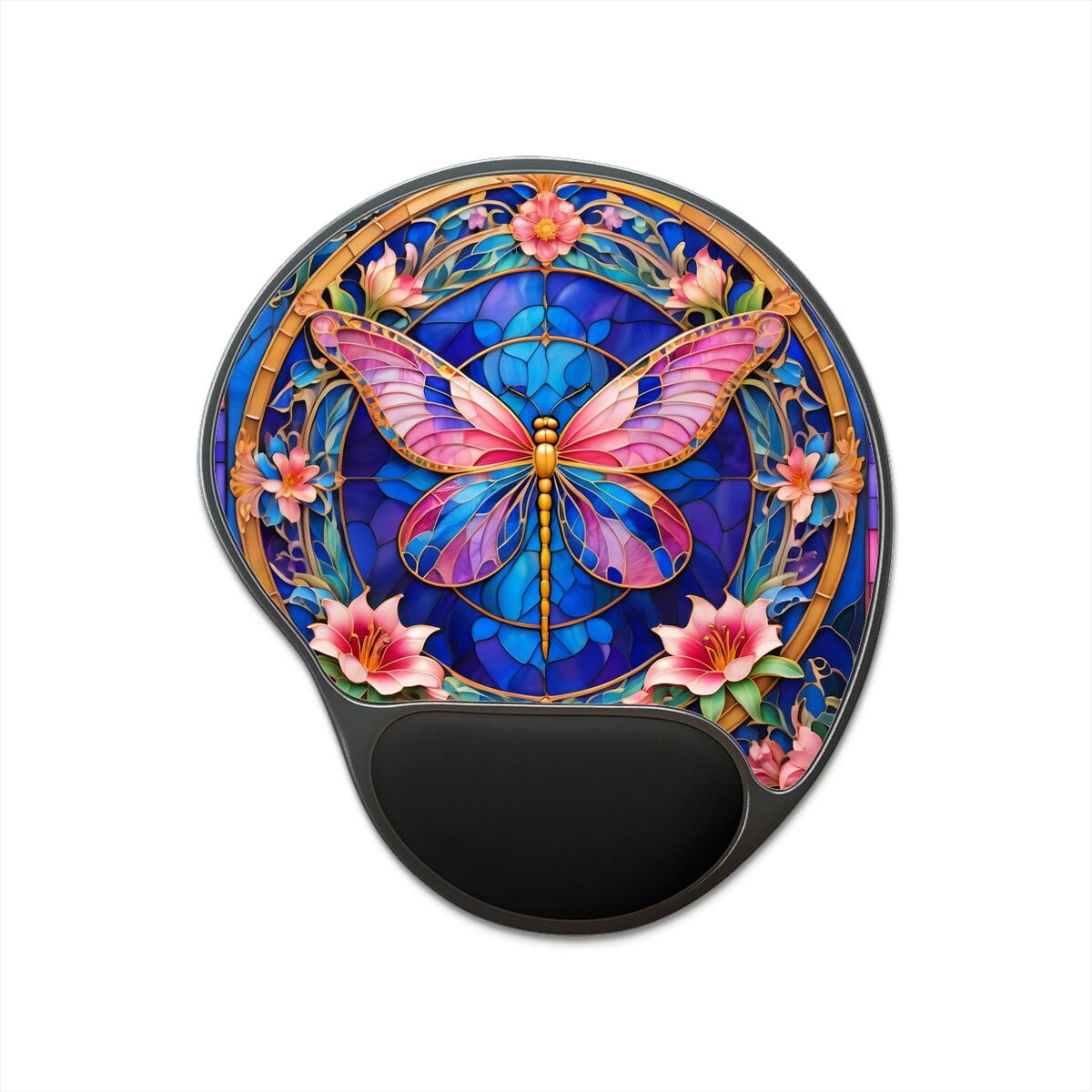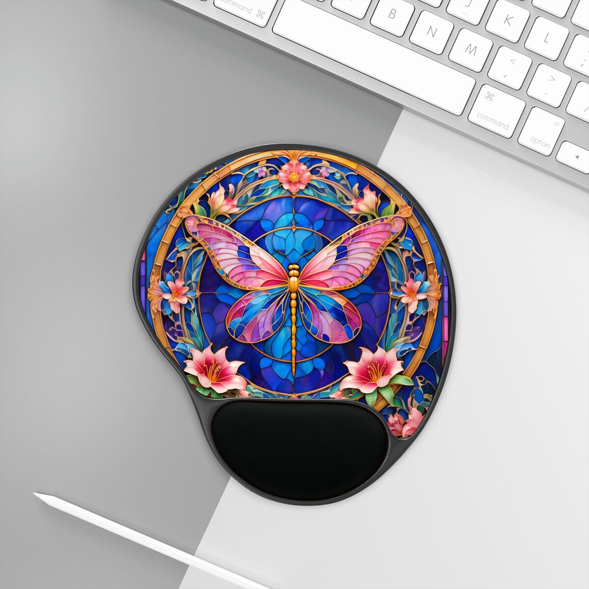 Butterfly Mouse Pad With Wrist Rest Faux Stained Glass Cute Pink Blue Office Gift Desk Mat Ergonomic Home Decor