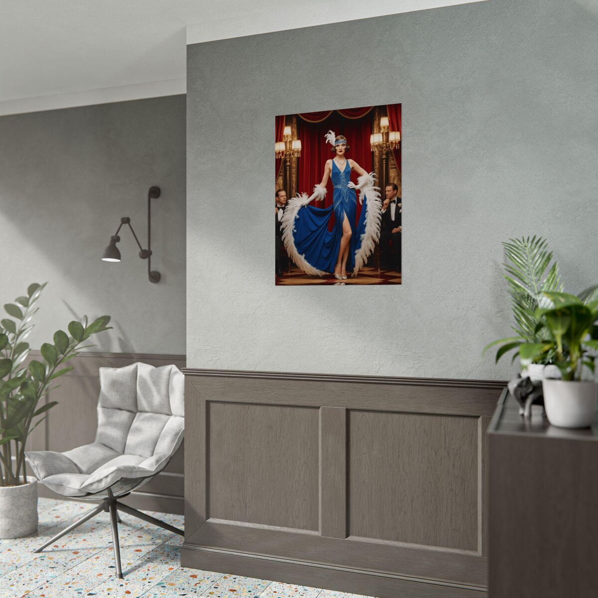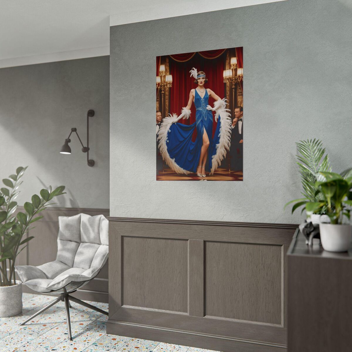 The combination of blues colors creates a luxurious and glamorous look, while the vintage-inspired Gatsby Girl design adds a unique and stylish flair. This wall art print is a must-have for anyone looking to bring a touch of 1920s charm to any room.