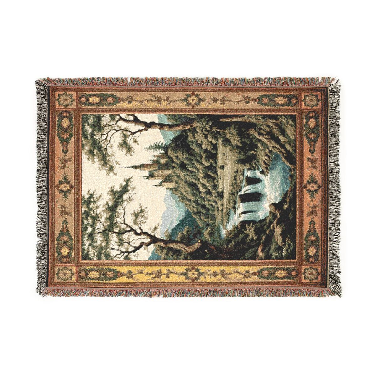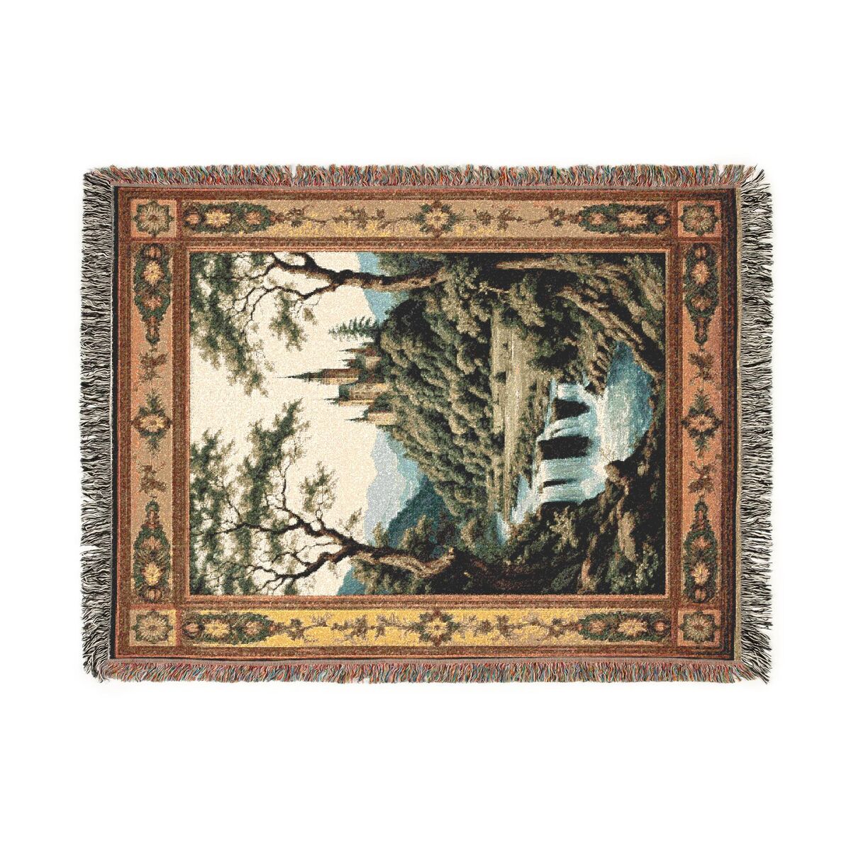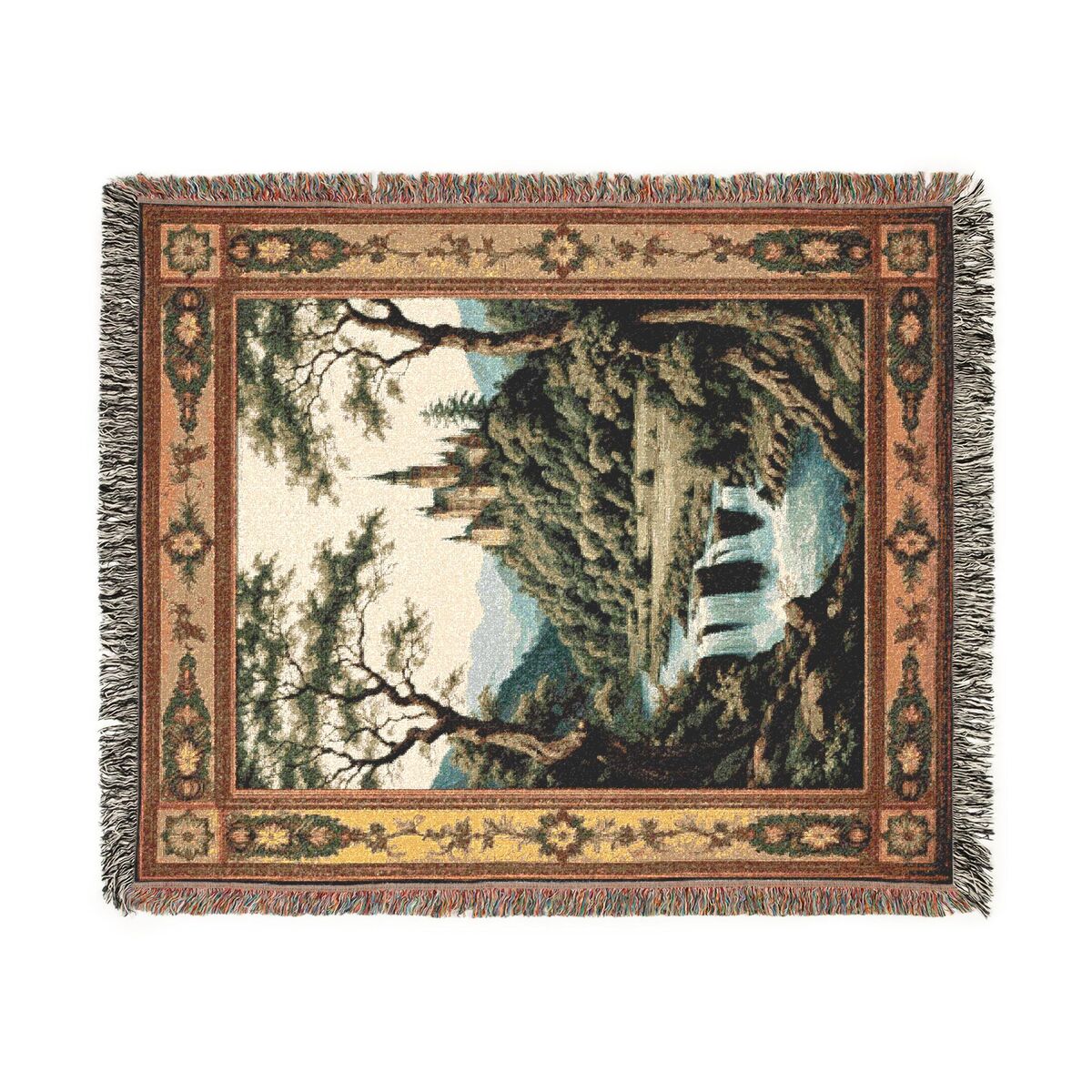 Castle Medieval Tapestry Waterfall Forest Woven Cotton Blanket Wall Hanging Dark Throw Art Decor