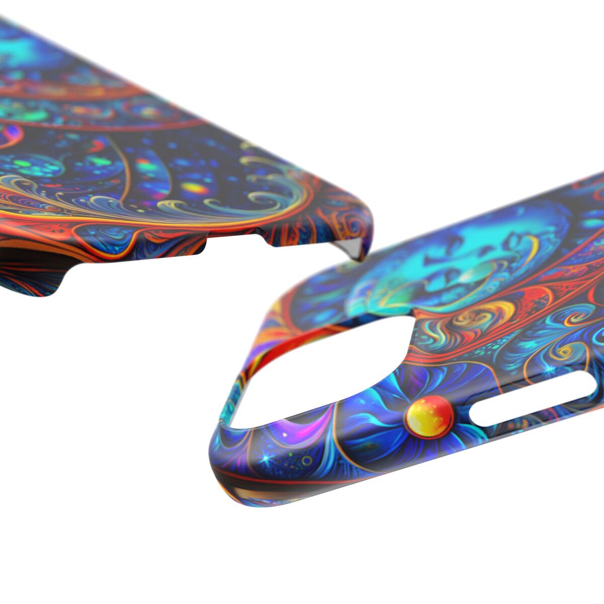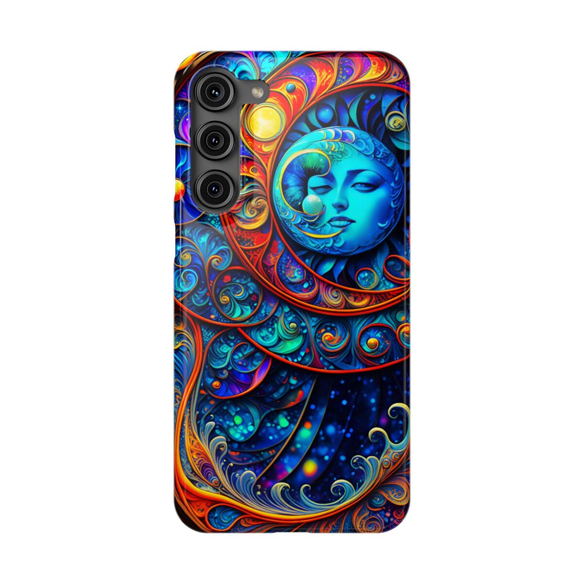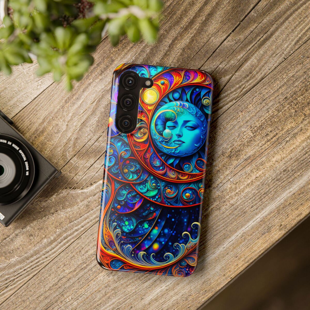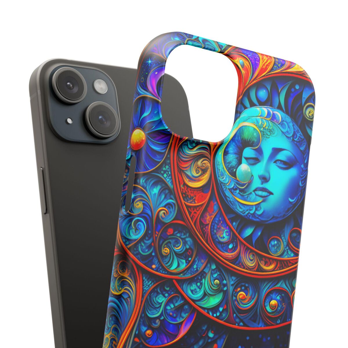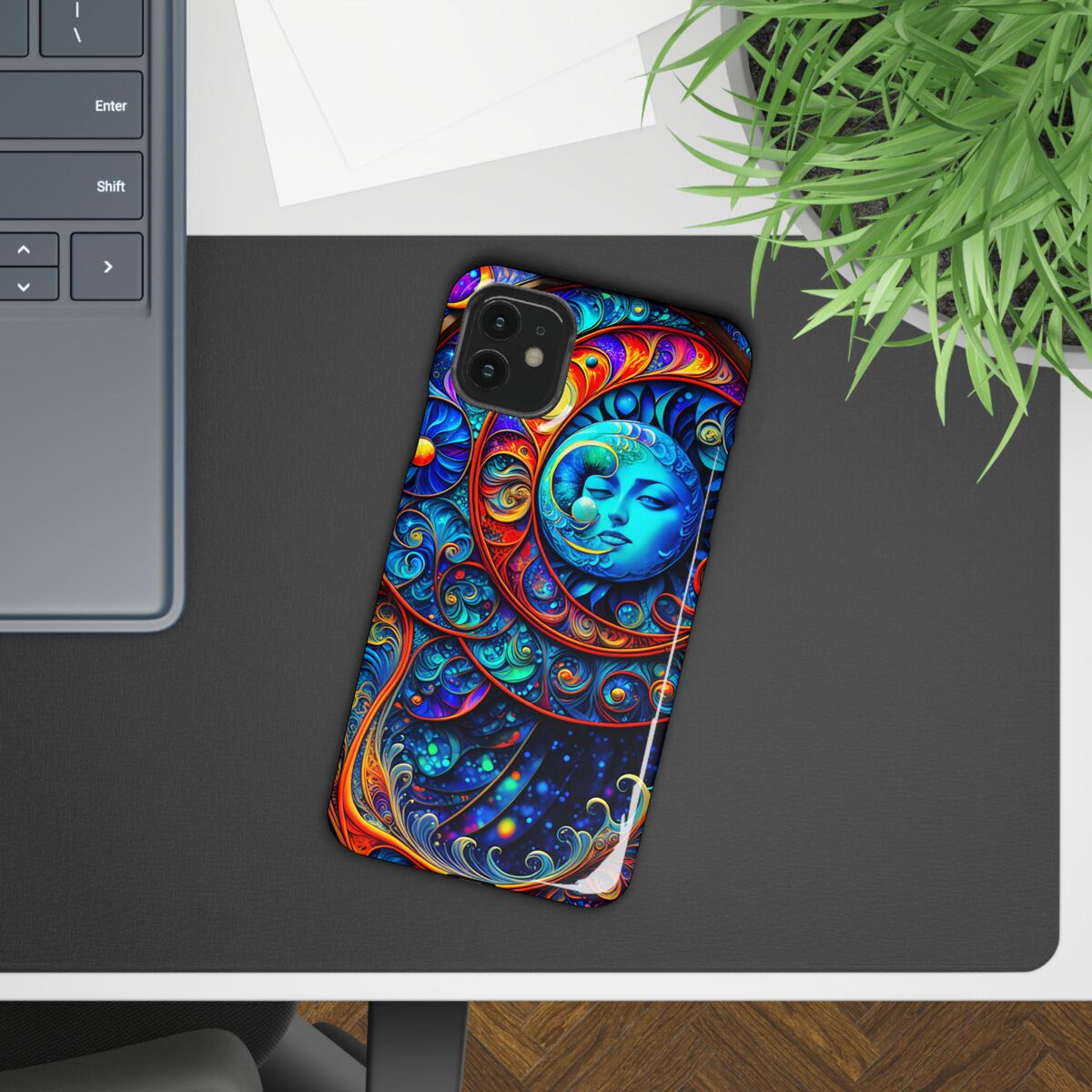 Protect your phone with our Moon Celestial Stained Glass Slim Phone Case. This durable case features a witchy peacock feather design that adds a touch of mystique to your device while keeping it safe from drops and scratches.