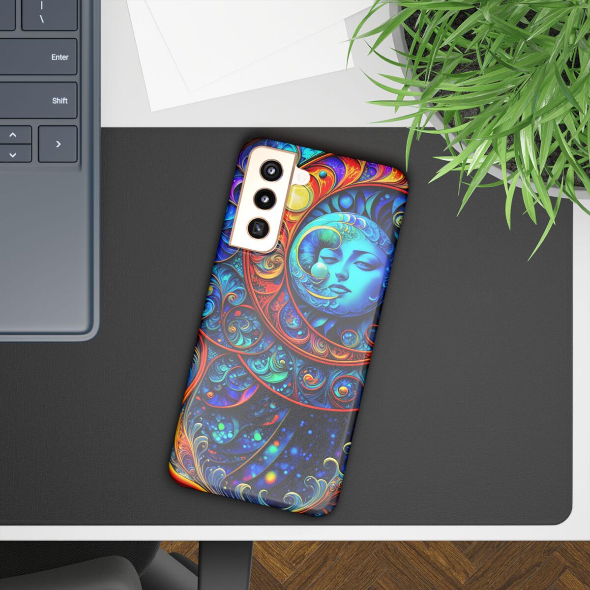 Made for Samsung and iPhone models, this phone case is perfect for anyone who loves celestial and witchy aesthetics. The stained glass design adds a unique and stylish look to your phone, making it stand out from the crowd. Keep your phone safe and stylish with our Moon Celestial Stained Glass Tough Phone Case.