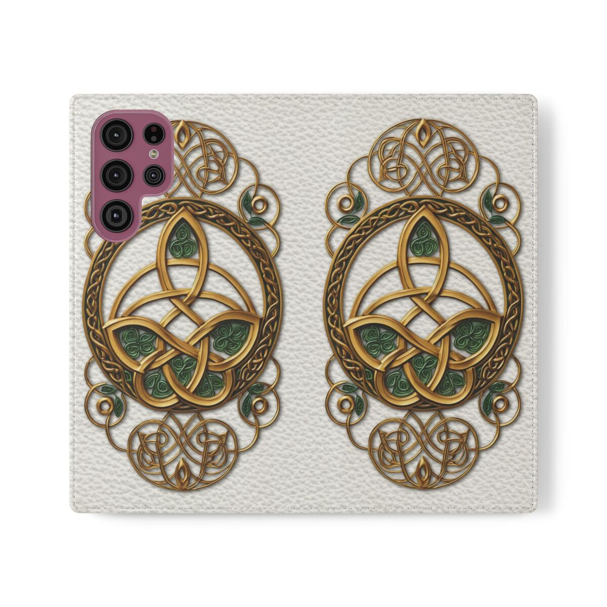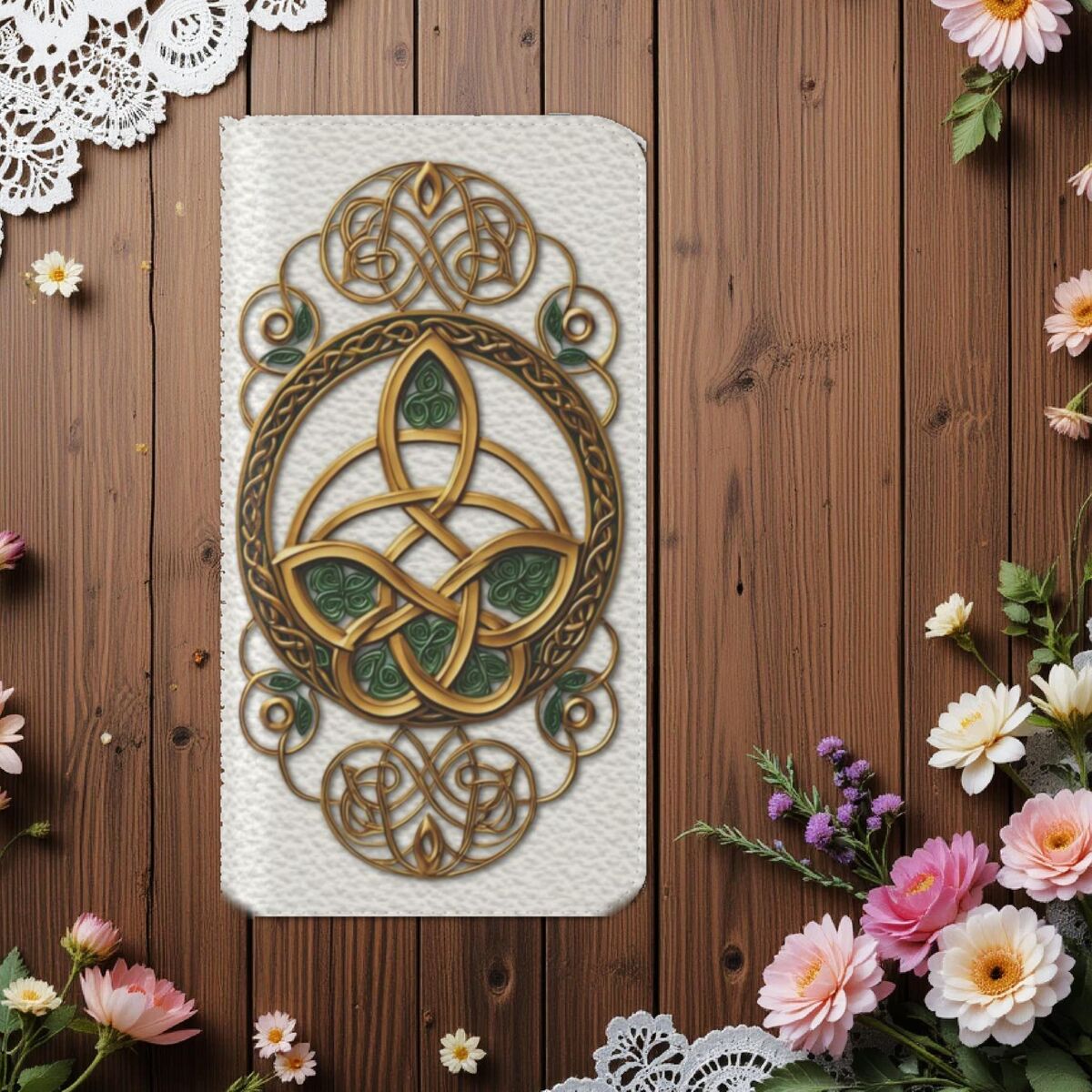 Introducing the Wallet Phone Case, designed for those who appreciate the mystical allure of the Celtic. This unique flip case features a captivating design, making it a perfect accessory for anyone who values both style and functionality. Crafted from vegan materials, this case not only protects your device but also aligns with eco-conscious values.