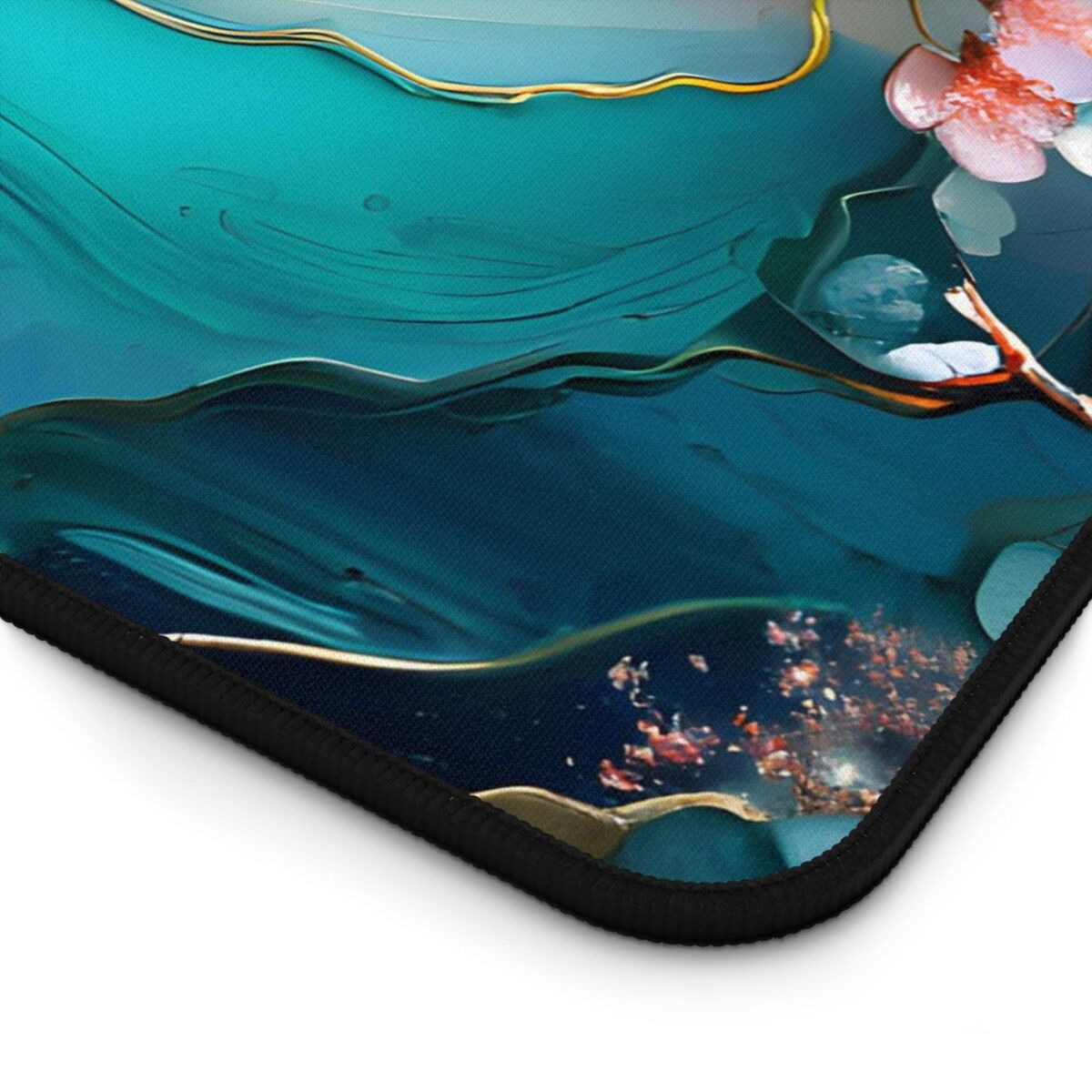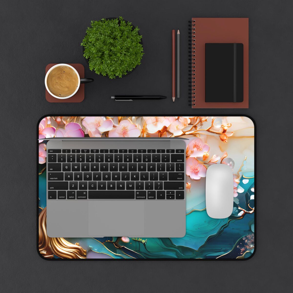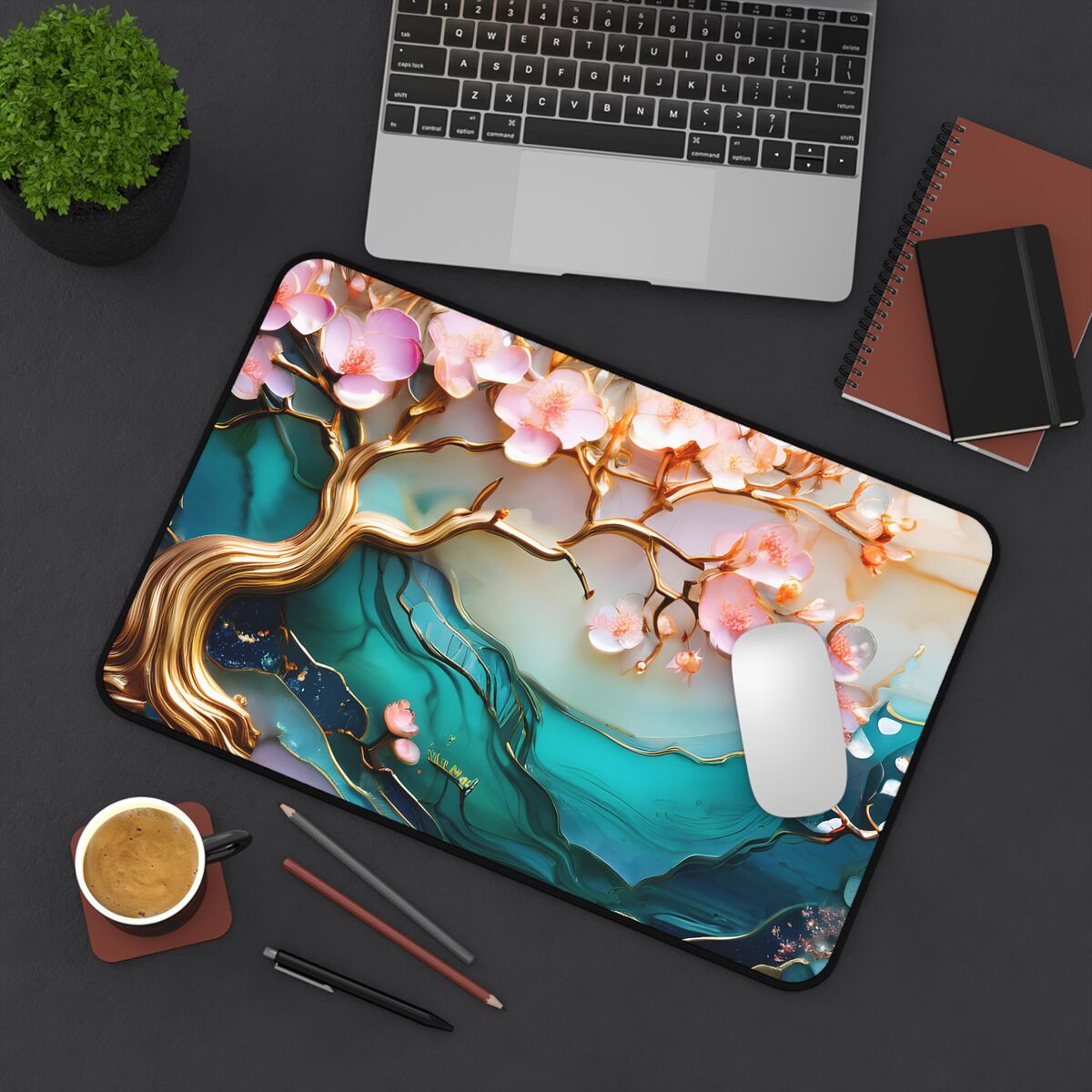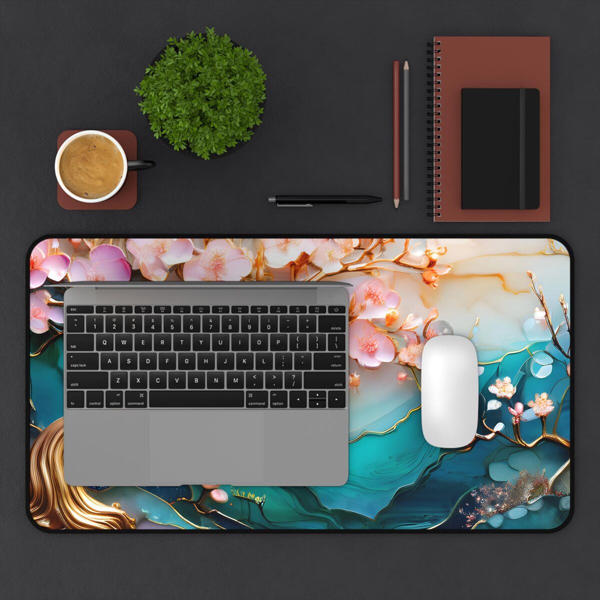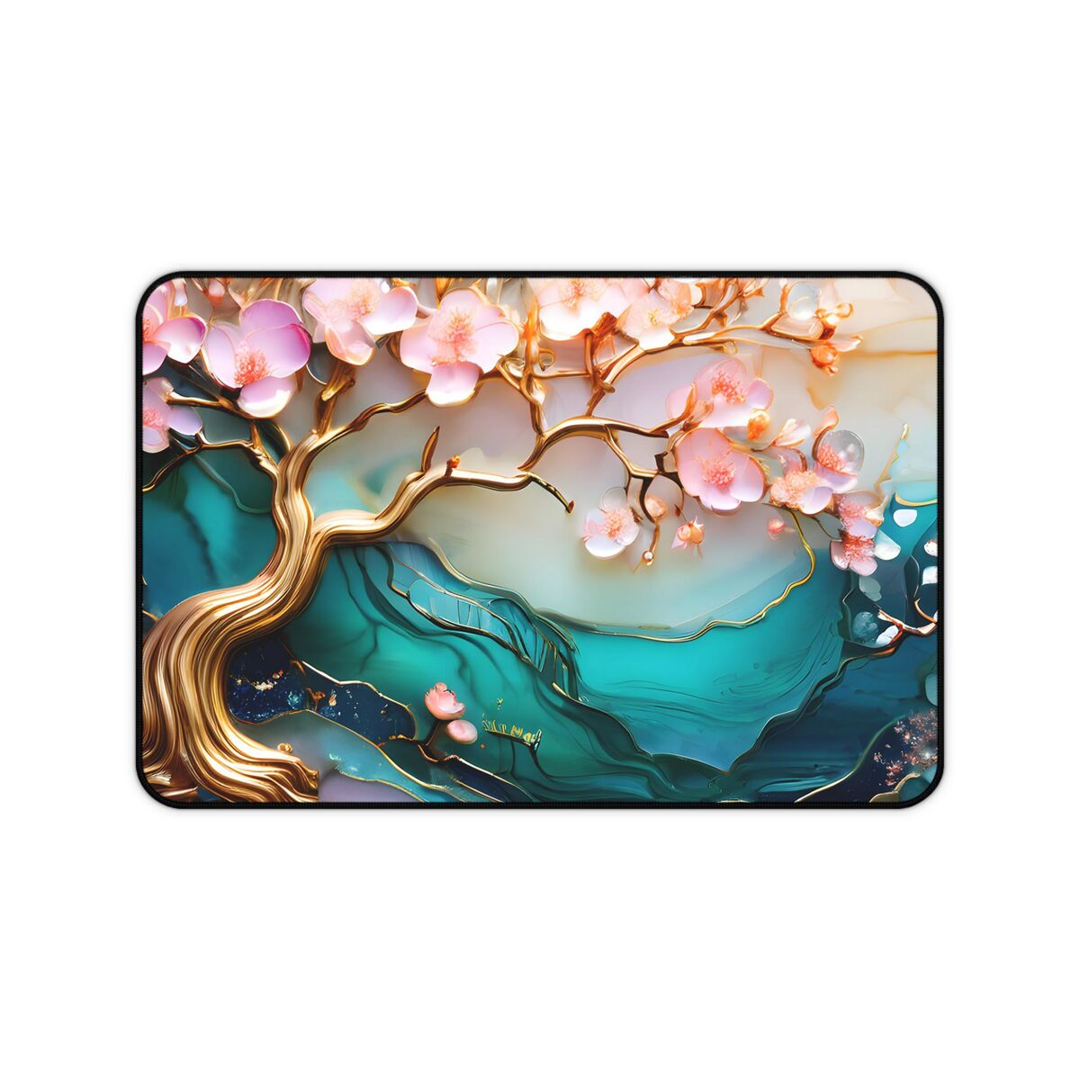 Cherry Blossom Desk Mat Mousepad Cute Aesthetic Sakura Asian Japanese Inspired Gold Pink Floral Office Decor Large Gaming Mat Pad
