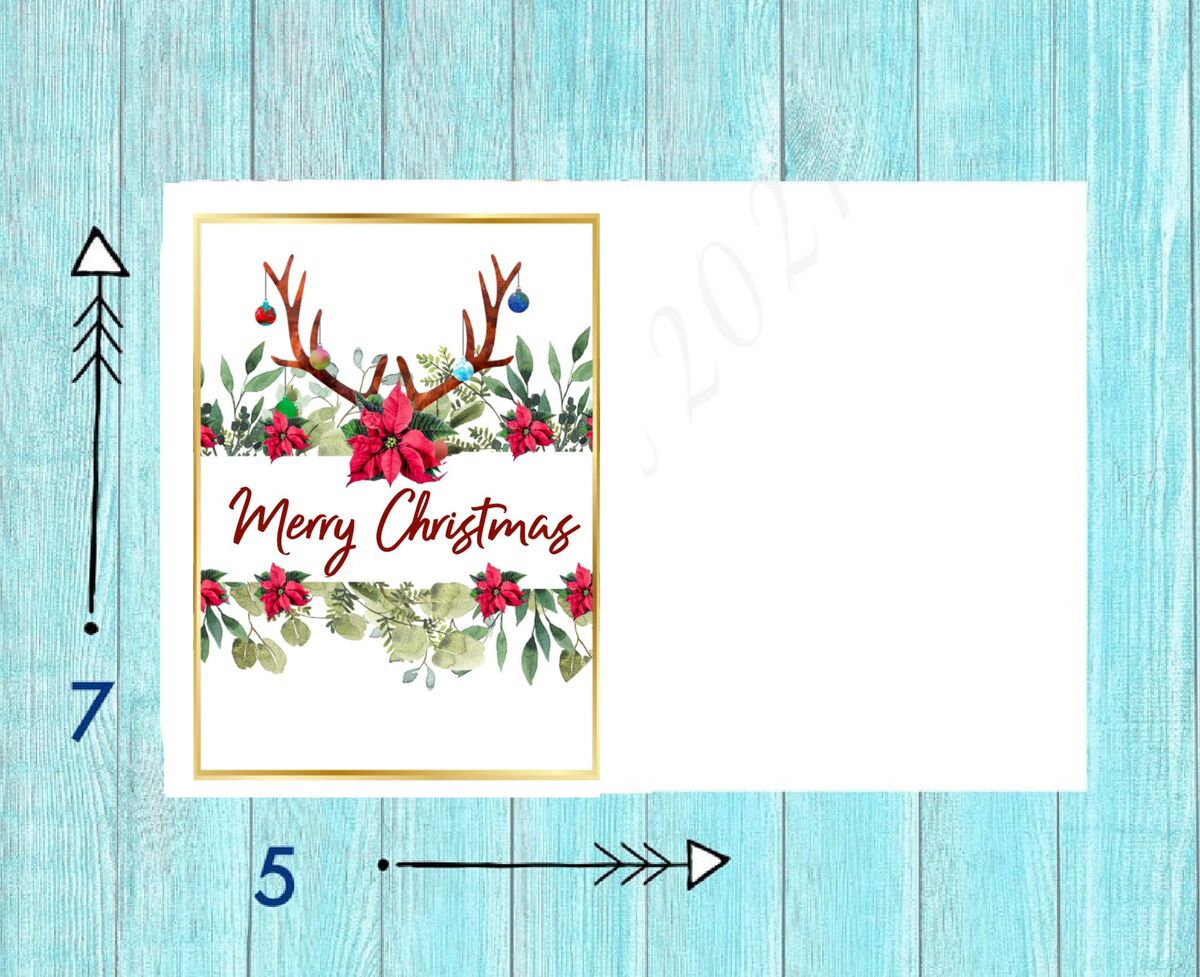 Christmas Card Printable Antler Reindeer Stag Instant Download Digital Greeting Card Blank DIY