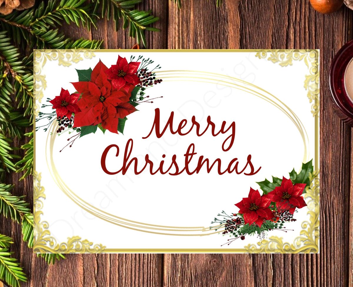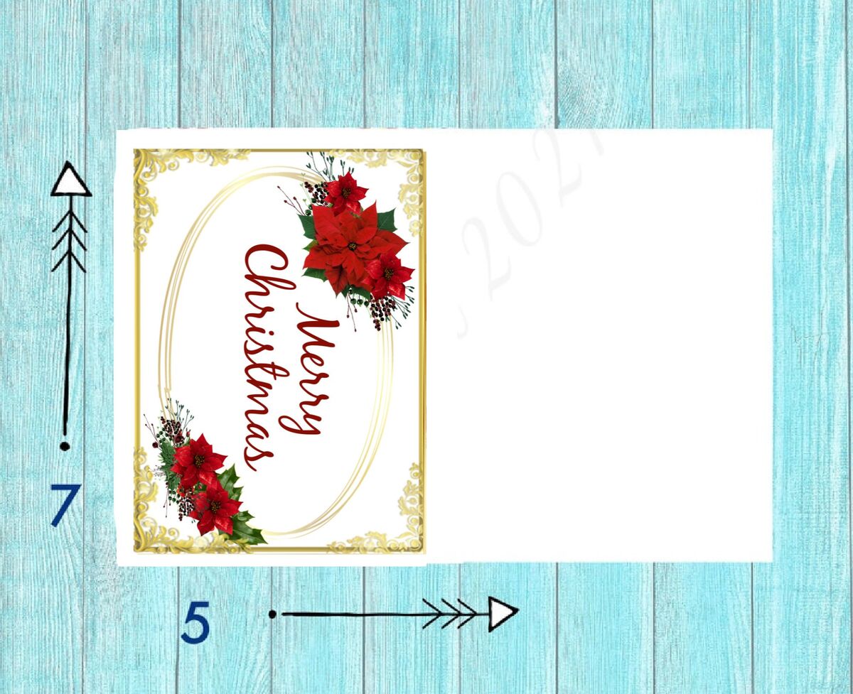 Christmas Card Printable Instant Download Digital Greeting Card Blank DIY Poinsettia