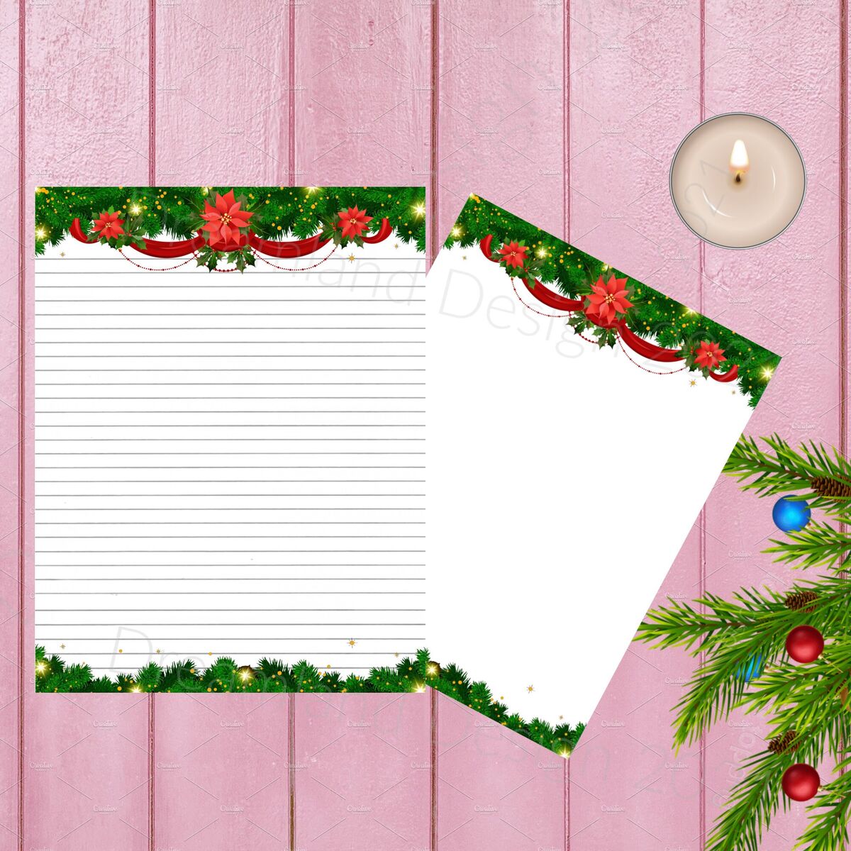 Christmas Flower Printable Stationary Blank Digital Writing Paper Red White Holiday Floral Lined Note Book Flower Paper