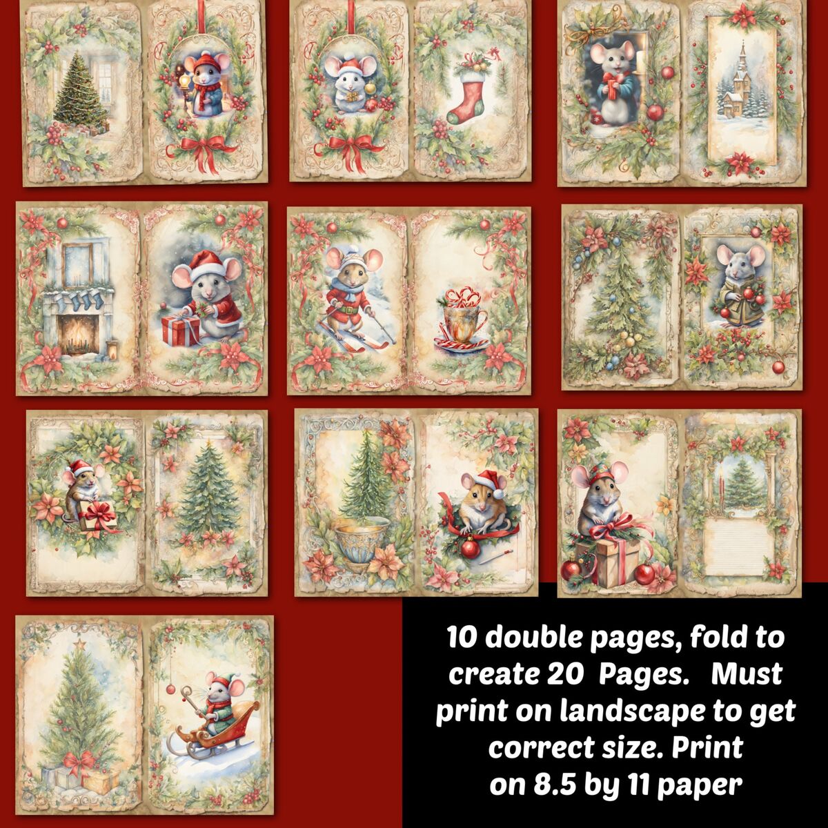 Christmas Mouse Journal Pages Shabby Holiday Printable Journal Junk Kit Vintage Ephemera Christmas Paper Digital Download