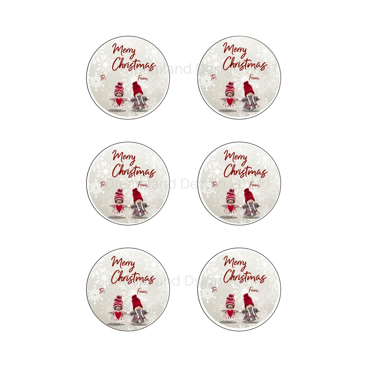 Christmas Sticker Tag Gift Printable Digital Download 2.5 Inch Round Circle PNG