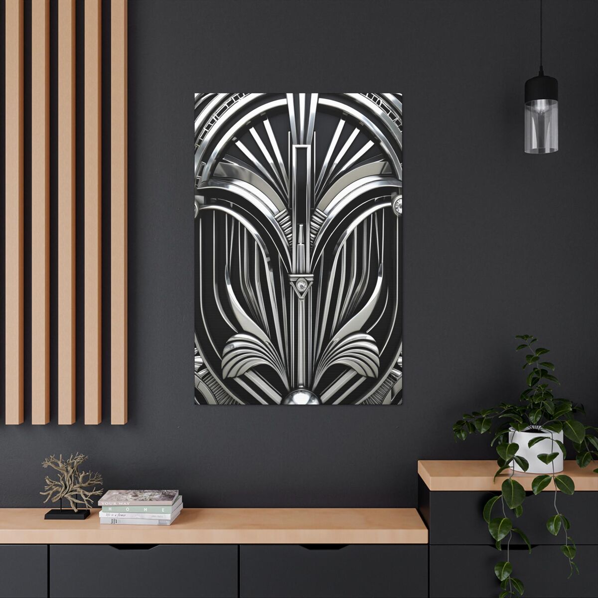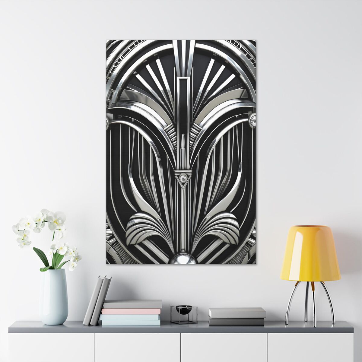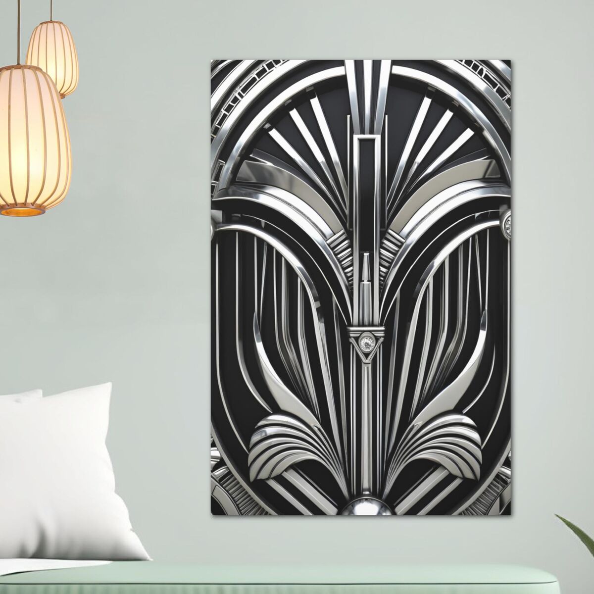 Chrome Gray Black Art Deco Geometric Wall Art Canvas Poster Print Living Room Gatsby Inspired Painting Mid Century Gold Black