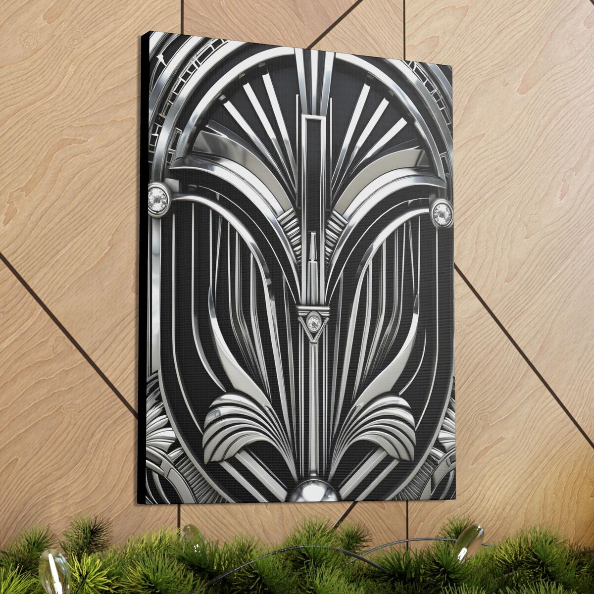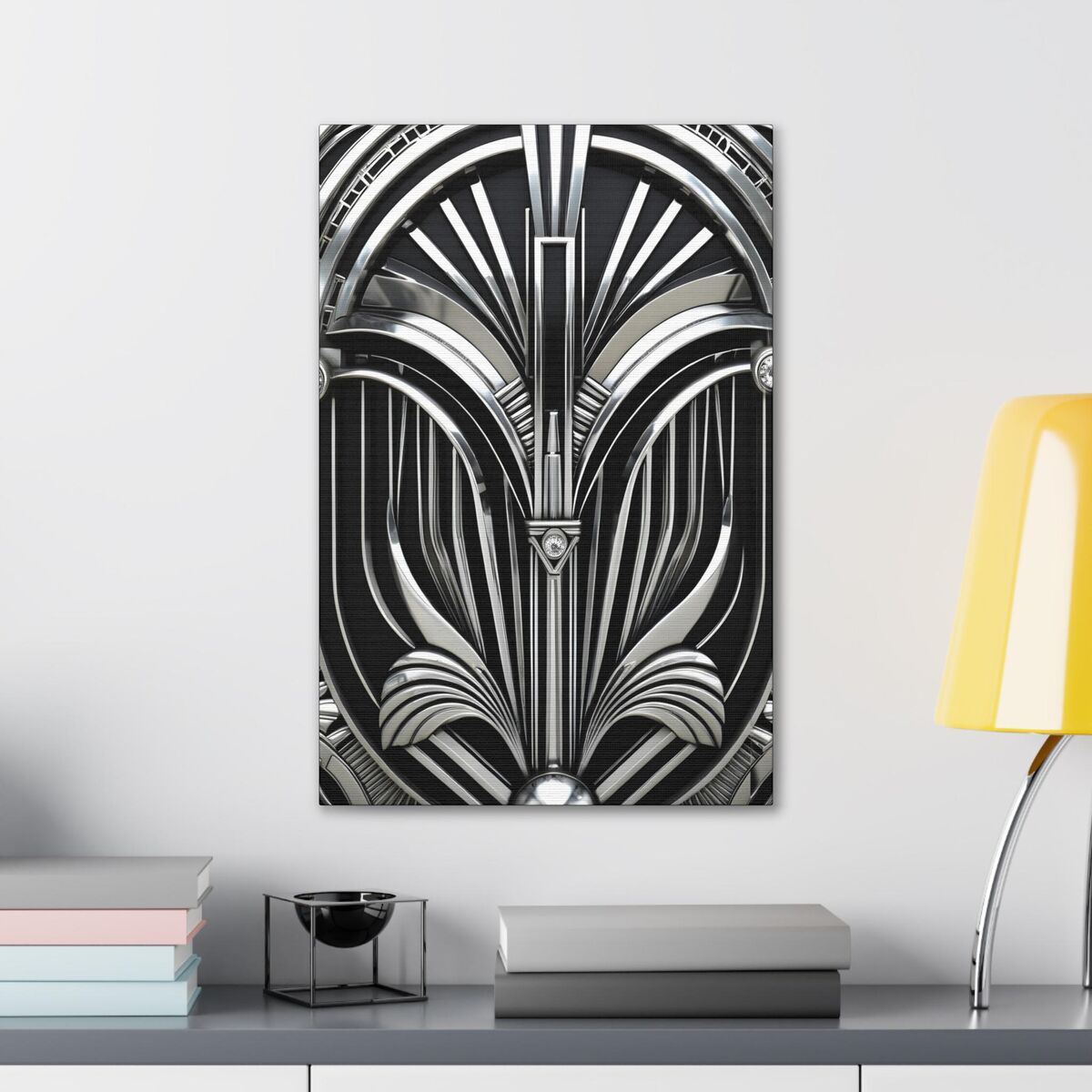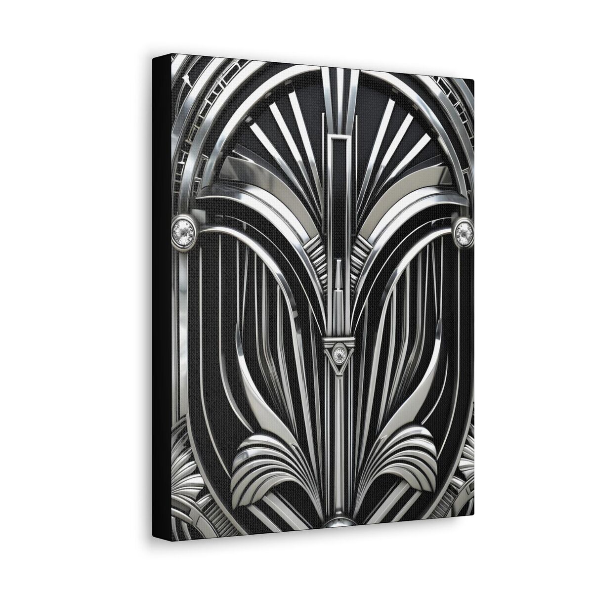Chrome Gray Black Art Deco Geometric Wall Art Canvas Poster Print Living Room Gatsby Inspired Painting Mid Century Gold Black