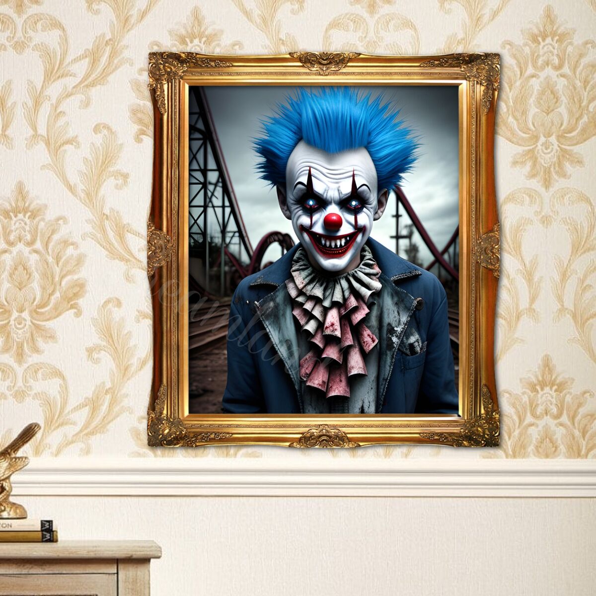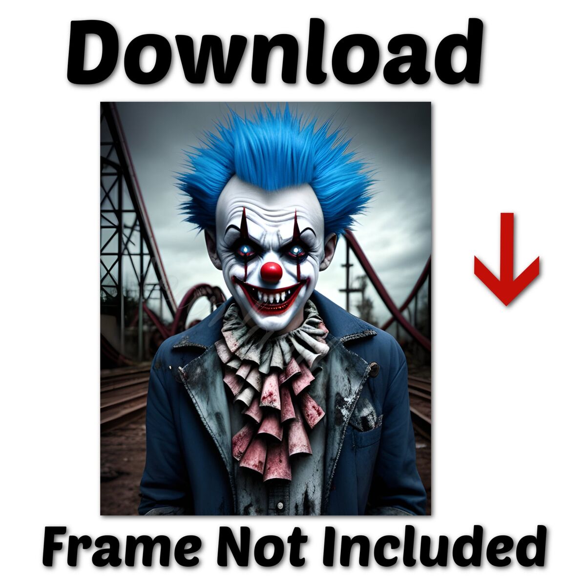 This creepy clown digital print, can be printed at several sizes. This is a download, no image will be sent to you.