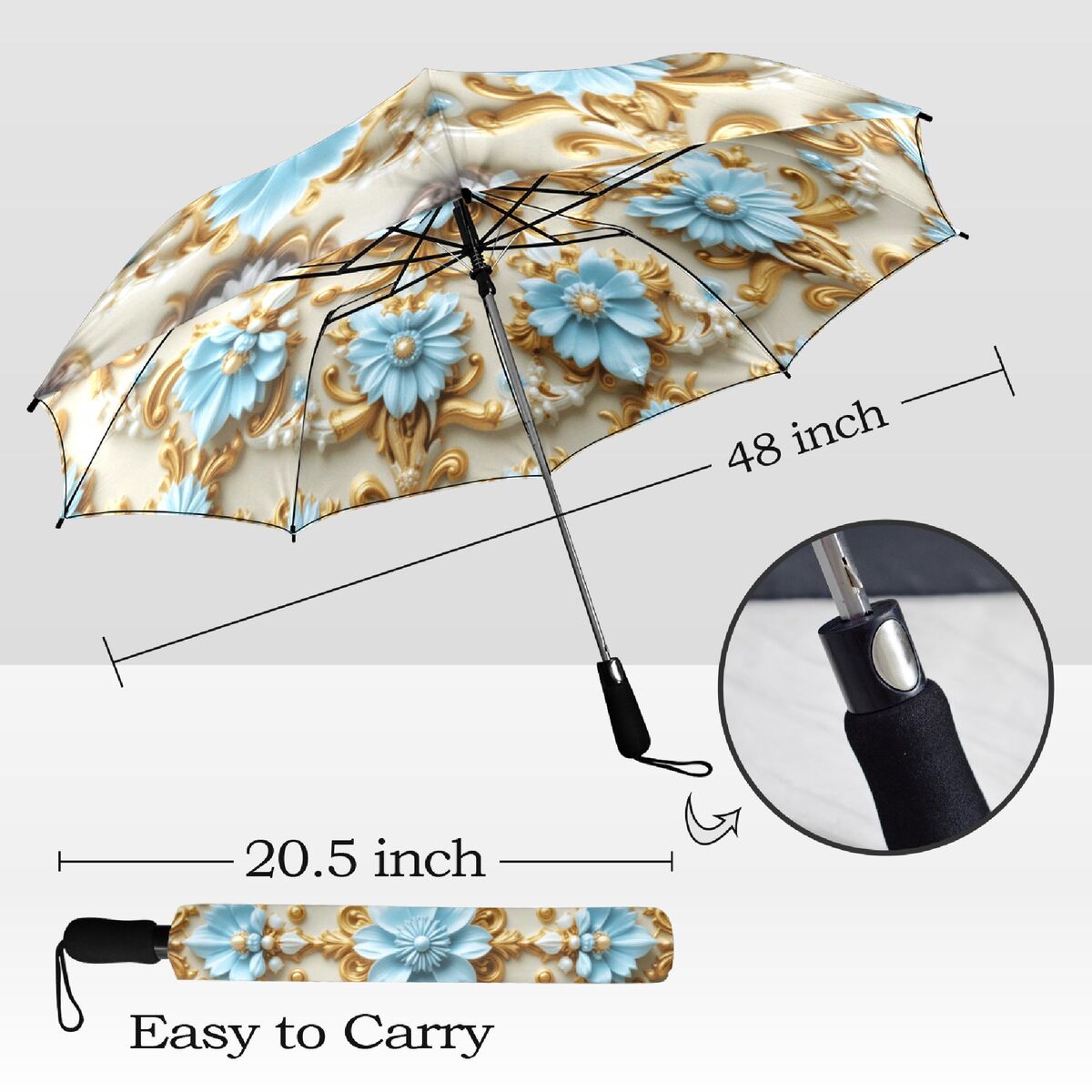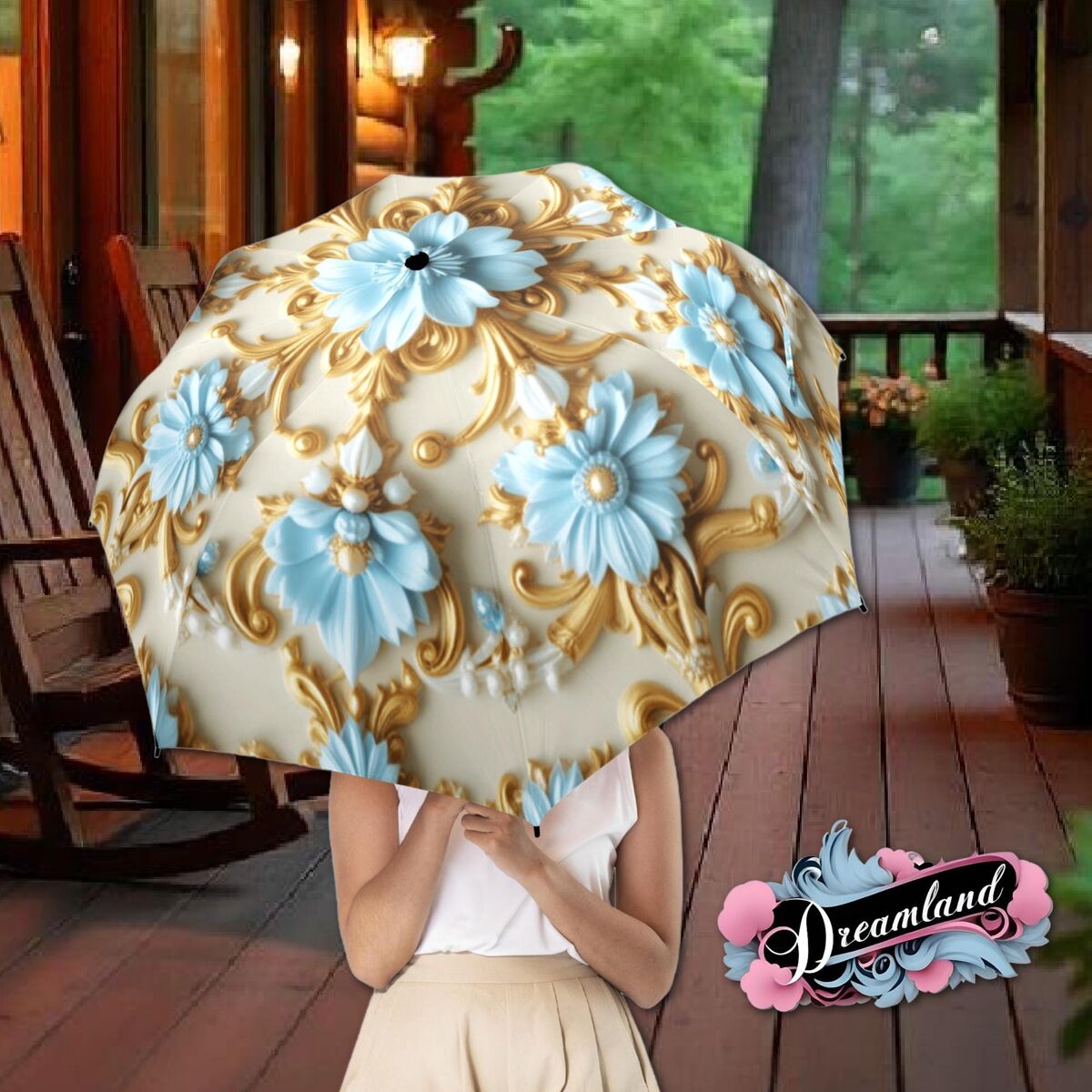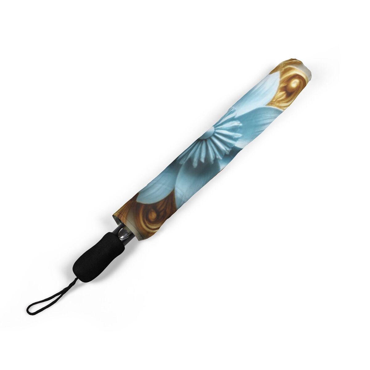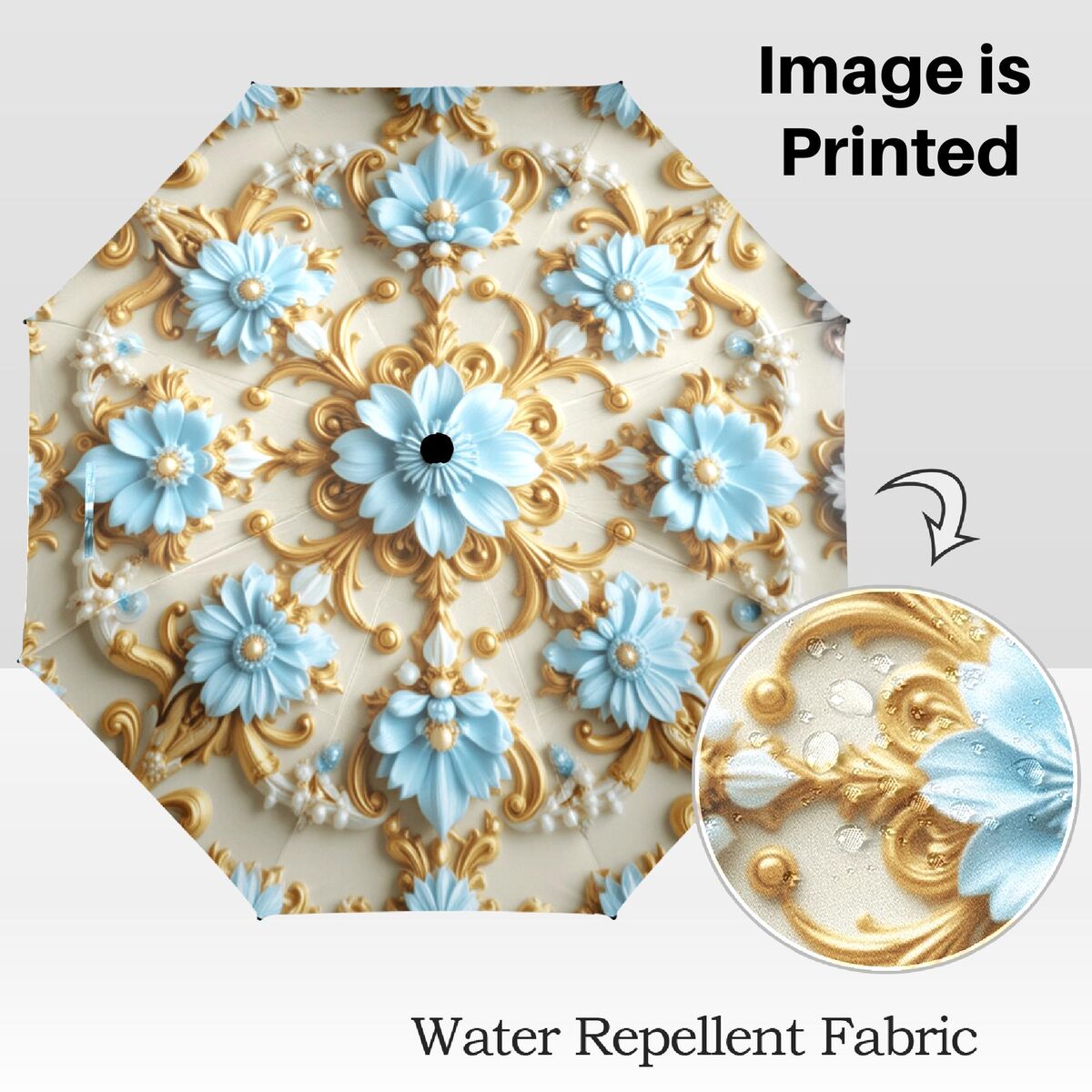 Cream Blue Gold Umbrella Art Nouveau Printed Mandella Parasol Semi-Automatic Waterproof Foldable Umbrella