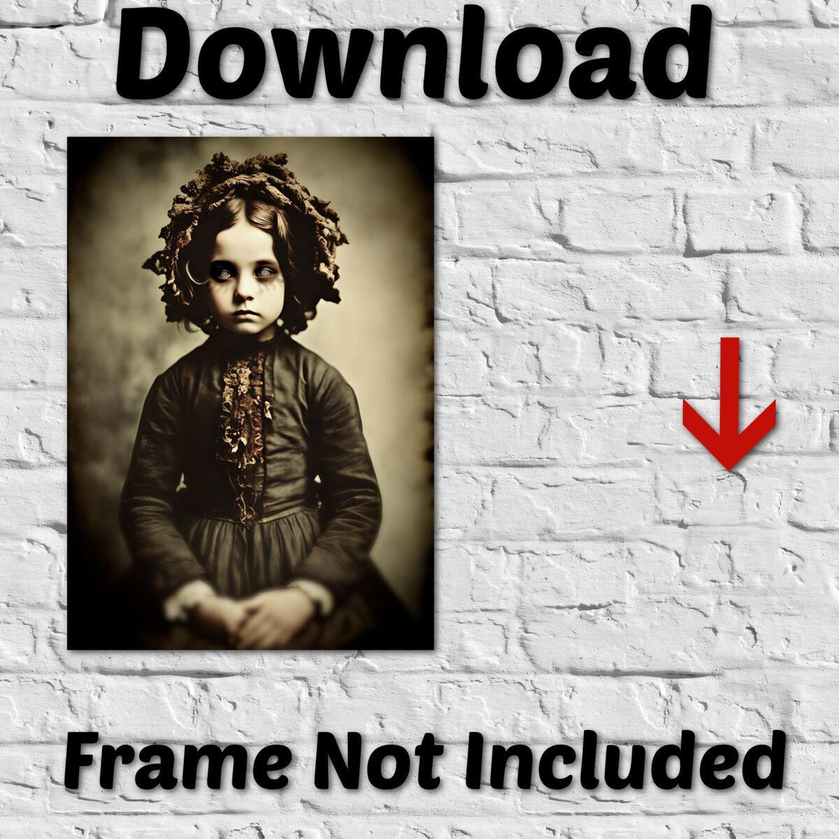 Creepy Girl Ghost Portrait Horror Printable Old Photo Victorian Wall Art Halloween Digital Print Download Ephemera