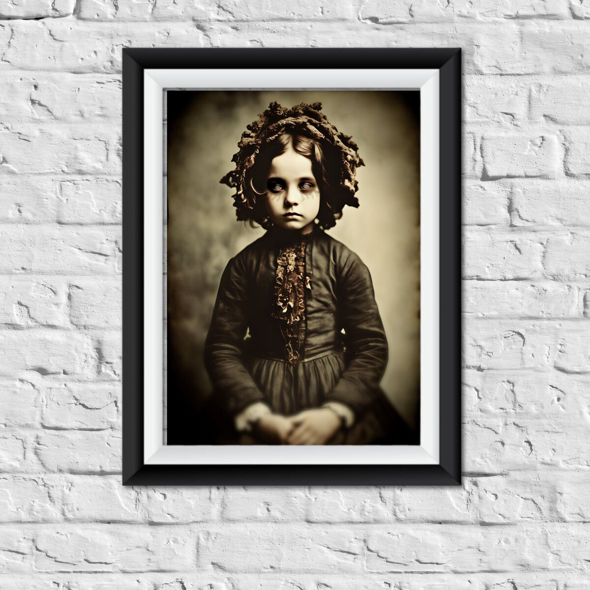 Photo Victorian Black Eyed Ghost Girl Horror Children Vintage Printable Art Halloween Creepy Download Wall Art Scrapbook Card