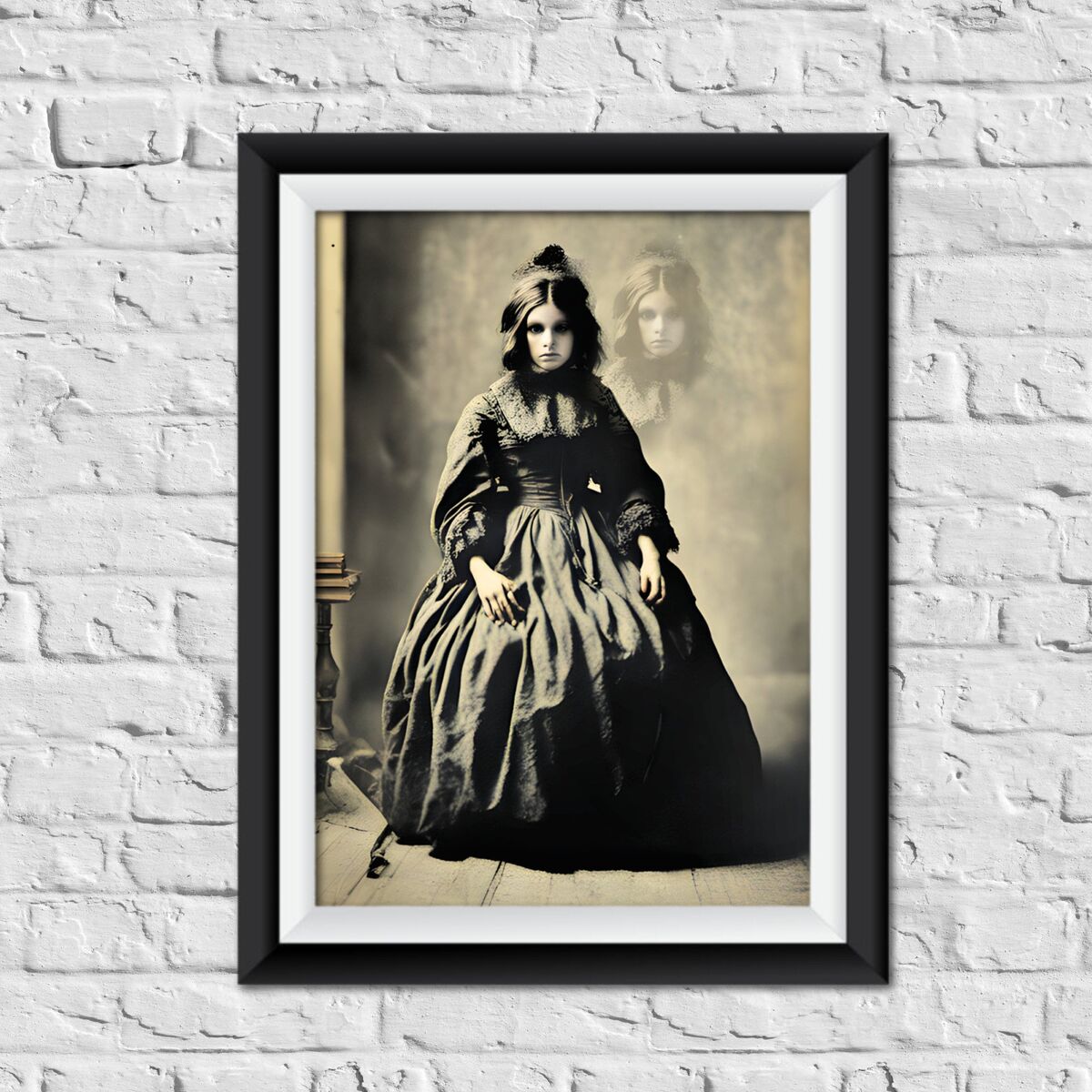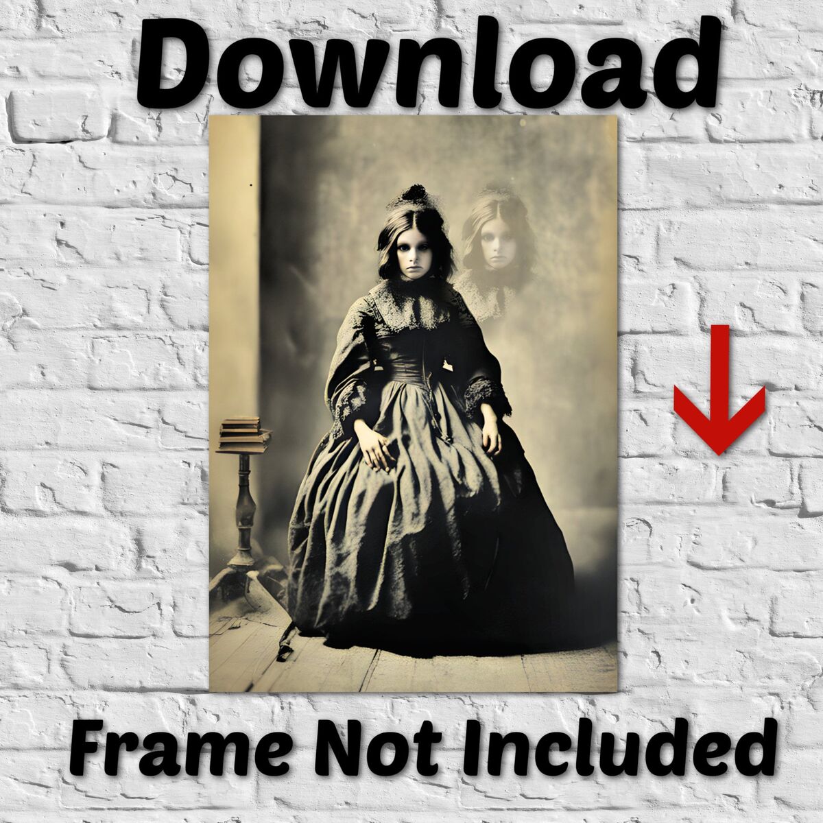 Creepy Girl Victorian Ghost Portrait Horror Printable Old Photo Wall Art Halloween Digital Print Download Ephemera