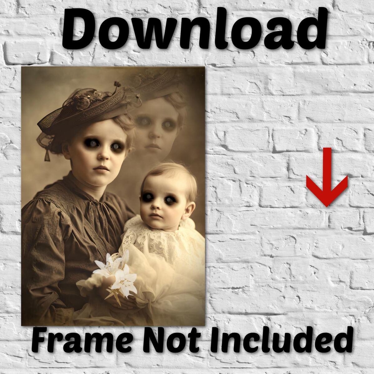 Creepy Girls Child Victorian Ghost Portrait Horror Printable Old Photo Wall Art Halloween Digital Print Download Ephemera